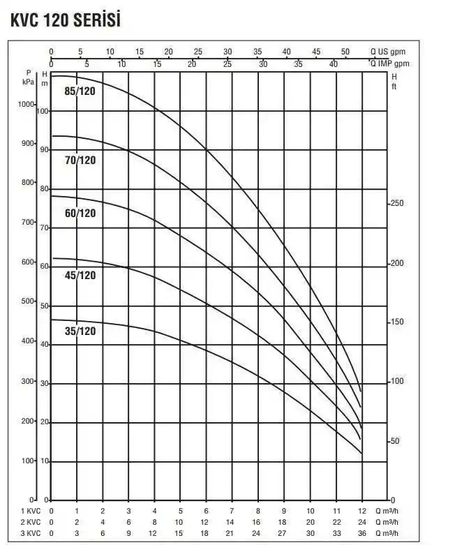 Baymak 2KVC 60/120 T Dikey Çok Kademeli Hidrofor Tavsiye edilen kullanım aralığı :
