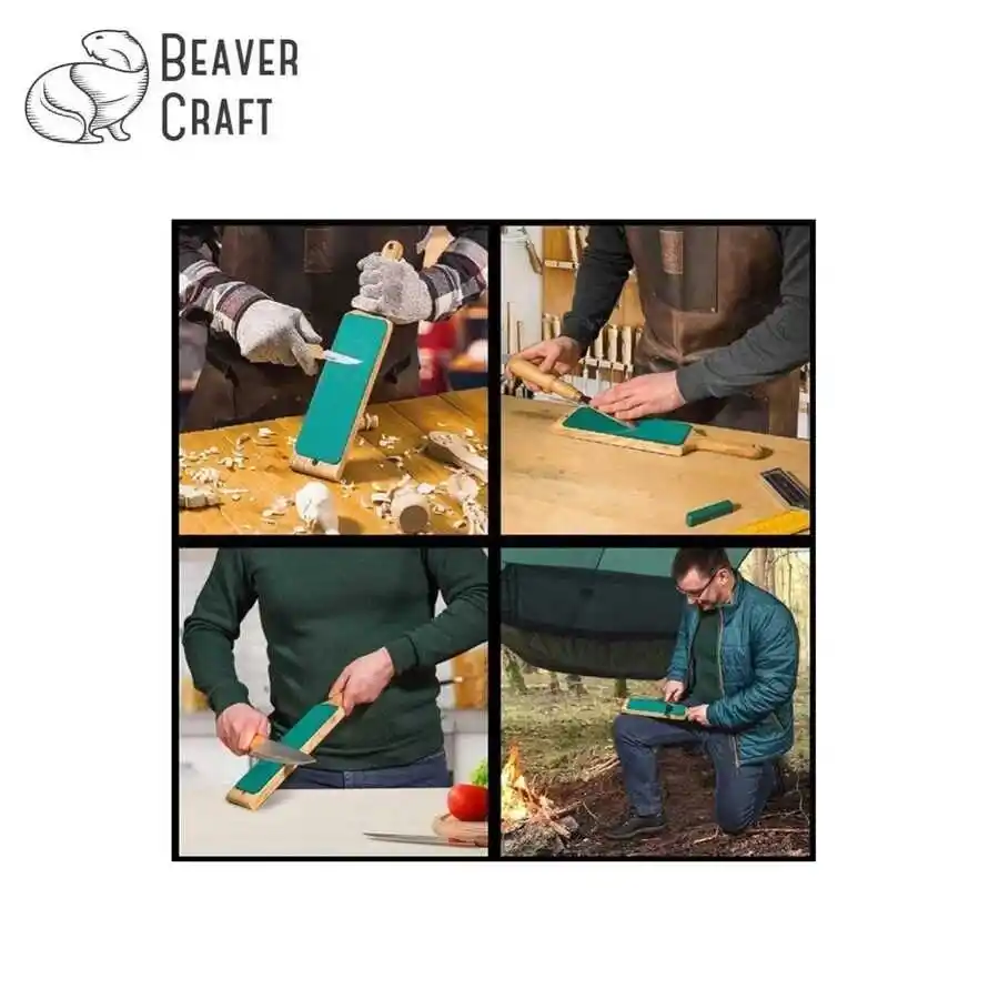 ● Çift taraflı tasarımı ile bileme ve parlatma işlemlerini birlikte yapmak için kapsamlı bir bileme deneyimi sunar. Keskinliği artırmak ve çapakları gidermek için kaba grenli süet yüzeyi, parlatma işlemleri için pürüzsüz olan deri yüzeyi kullanılır.