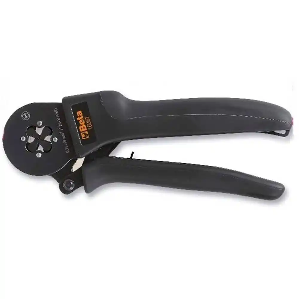 Beta 1606T, elektrik kablolarının uçlarına takılan boru tipi terminalleri (yüksükleri) sıkıştırmak için kullanılan profesyonel bir kare sıkma (4-sided crimping) pensesidir. Standart penselerin aksine, terminale her yönden eşit basınç uygulayarak kablo tellerini terminal içine gaz sızdırmaz bir şekilde hapseder. 0.08 mm² gibi çok ince kesitlerden 10 mm² kalınlığa kadar geniş bir yelpazede ayar gerektirmeden çalışabilir.