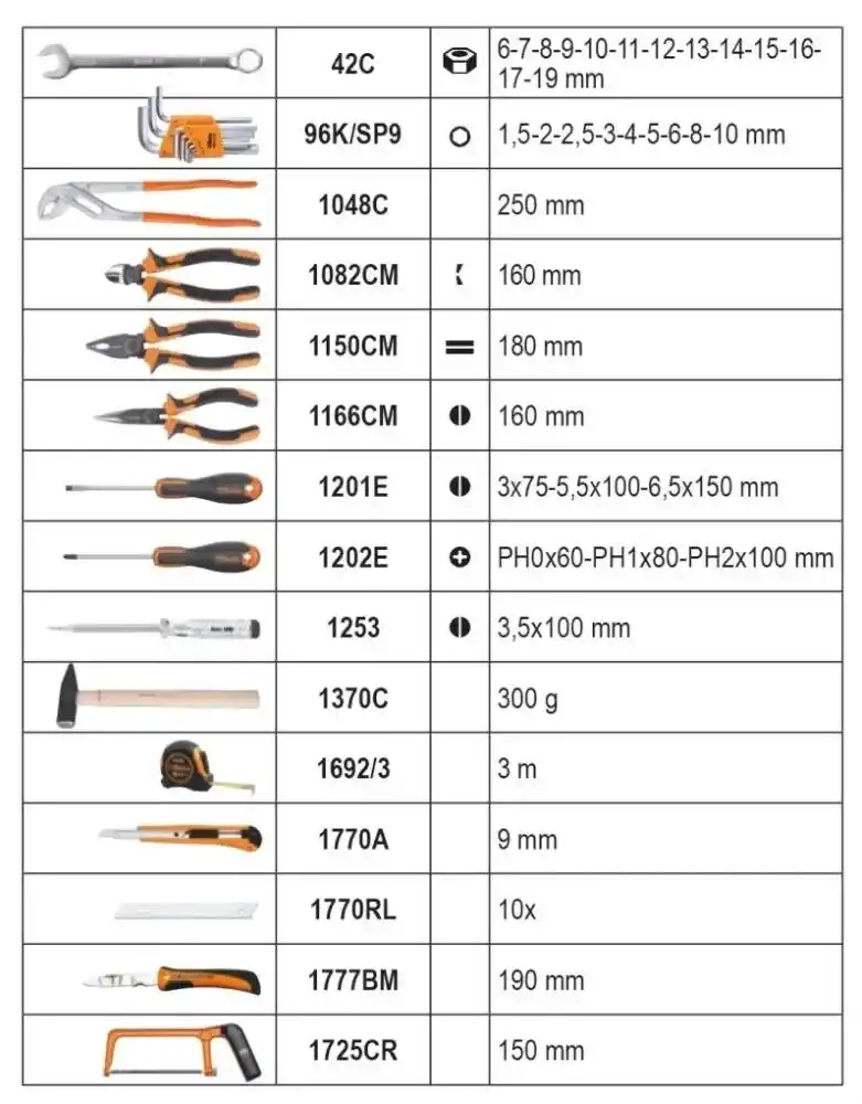 | İzoleli Aletler (1000V) | İzoleli tornavidalar (Yıldız/Düz), Yan keski, Kombine pense, Kargaburun |