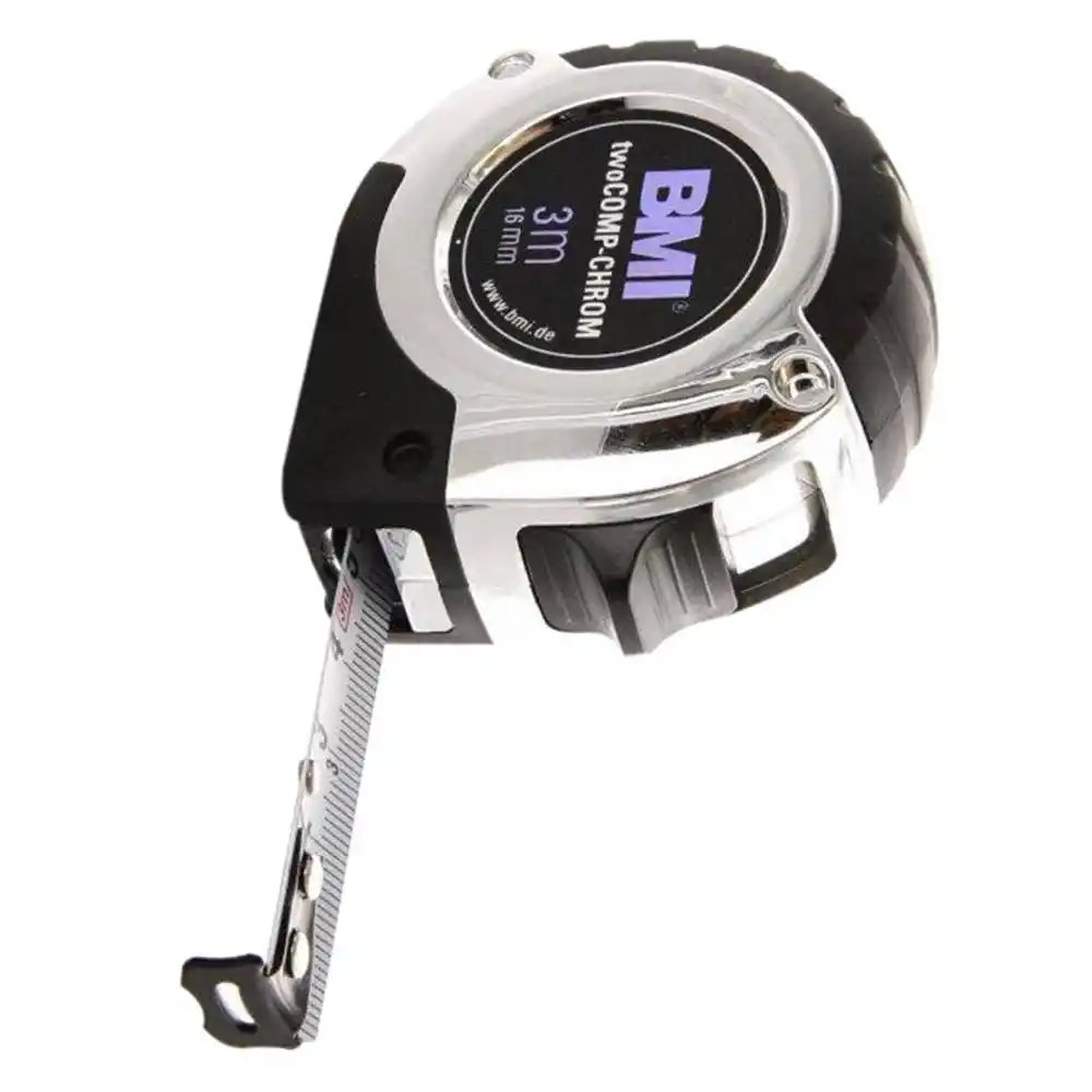 BMI TwoCOMP, profesyonel kullanım için geliştirilmiş, yüksek kaliteli bir cep tipi şerit metredir. Ürünün en belirgin özelliği, darbe direncini artıran ve estetik bir görünüm sunan krom kaplı "TwoCOMP" (çift bileşenli) gövde yapısıdır. Bu gövde, şantiye ve atölye gibi zorlu çalışma ortamlarında cihazın iç mekanizmasını korurken, kullanıcıya mükemmel bir tutuş ergonomisi sağlar.