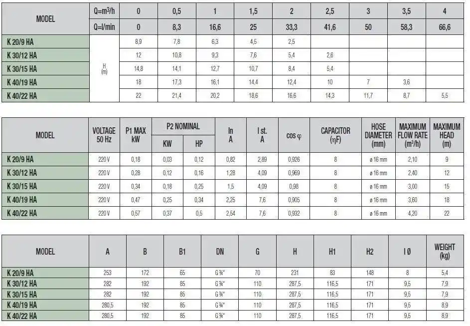 Dab K 20/09 HA Basınçlandırma Pompası-Pompamat-Mini Hidrofor Teknik Özellikler