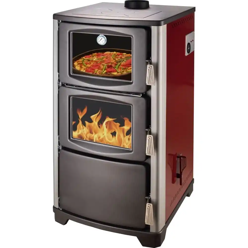 Daiwa DK-29 Kuzineli Şömineli Kat Kaloriferi Sobası ile hem kalorifer keyfiniz hem kuzineli fırın imkanı bir arada. Evlerinizde, villalarınızda, dağ evlerinizde, köy evinizde yada dairelerinizde vs kullanabileceğiniz çok amaçlı bir ısıtma ve pişirme ürünüdür. Daiwa DK-29 Kuzineli Şömineli Kat Kaloriferi Sobası ile İster ekmek yapın ister yemek pişirin, fonksiyonel bir ürünün keyfini çıkarın. Dahili sıcak sulu modeli seçerek soba yandığı müddetçe banyonuzdan, lavabolarınızdan sürekli sıcak su alabilirsiniz. Daiwa DK-29 Kuzineli Şömineli Kat Kaloriferi Sobası kurulum için gerekli olan pompa, genleşme tankı ve sobanın sıcaklığını kontrol edebileceğiniz mekanik termostat ile birlikte teslim edilmektedir. Camlı yanma haznesi sayesinde mekanınızda şömine keyfini yaşayabilirsiniz. Daiwa DK-29 Kuzineli Şömineli Kat Kaloriferi Sobası ile pasta börek yemek gibi yiyeceklerinizi pişirebilir sobanın üstünü de ısıtma amacıyla kullanabilirsiniz.