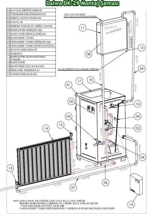 NOT : Bu Daiwa DK-29 Kuzineli Şömineli Kat Kaloriferi Sobası ev içinde kullanım için uygundur. Lütfen mutfak, salon, antre...v.s. gibi yerlerde kullanınız. Ev dışı kullanım durumunda ısınma ile ilgili sorunlarda firmamız sorumlu değildir.