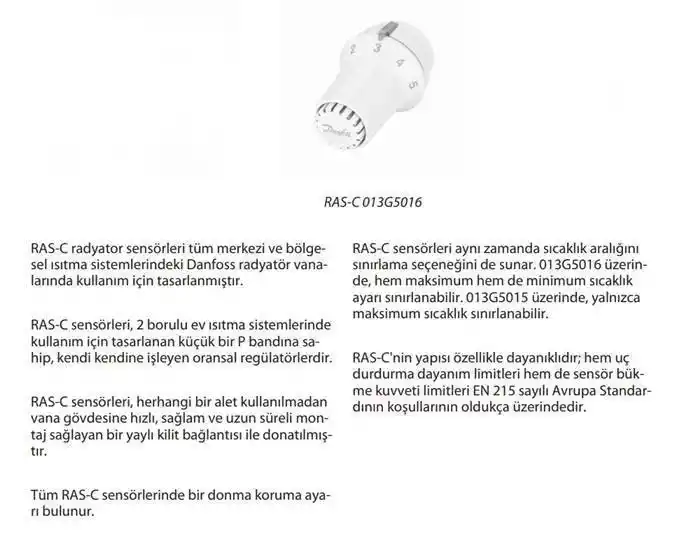RAS-C radyatör sensörleri tüm merkezi ve bölgesel ısıtma sistemlerindeki Danfoss radyatör vanalarında kullanım için tasarlanmıştır.