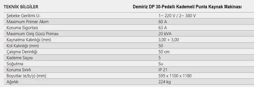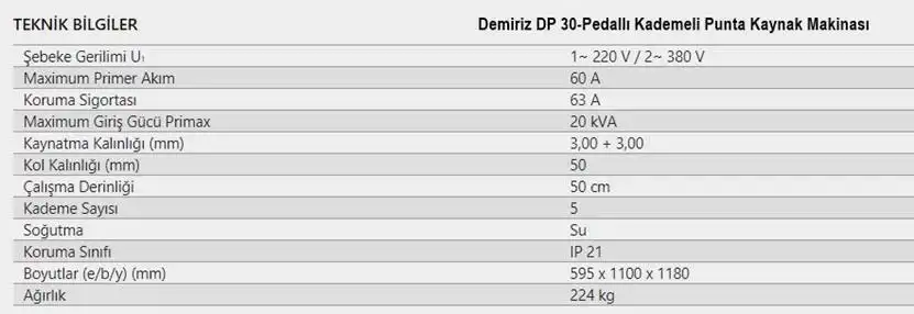 Demiriz DP 30 Pedallı Kademeli Punta Kaynak Makinası