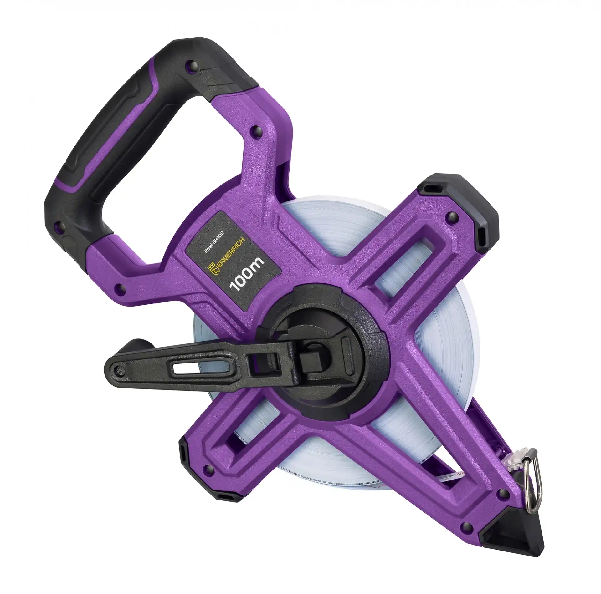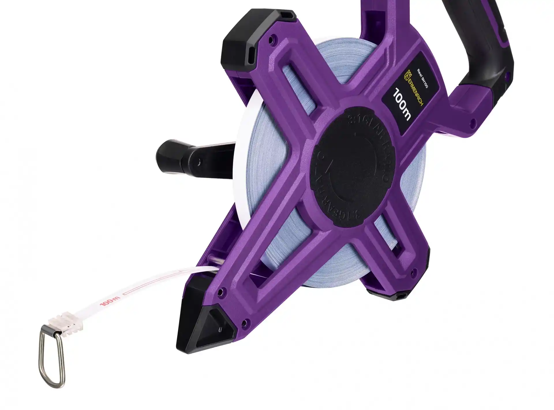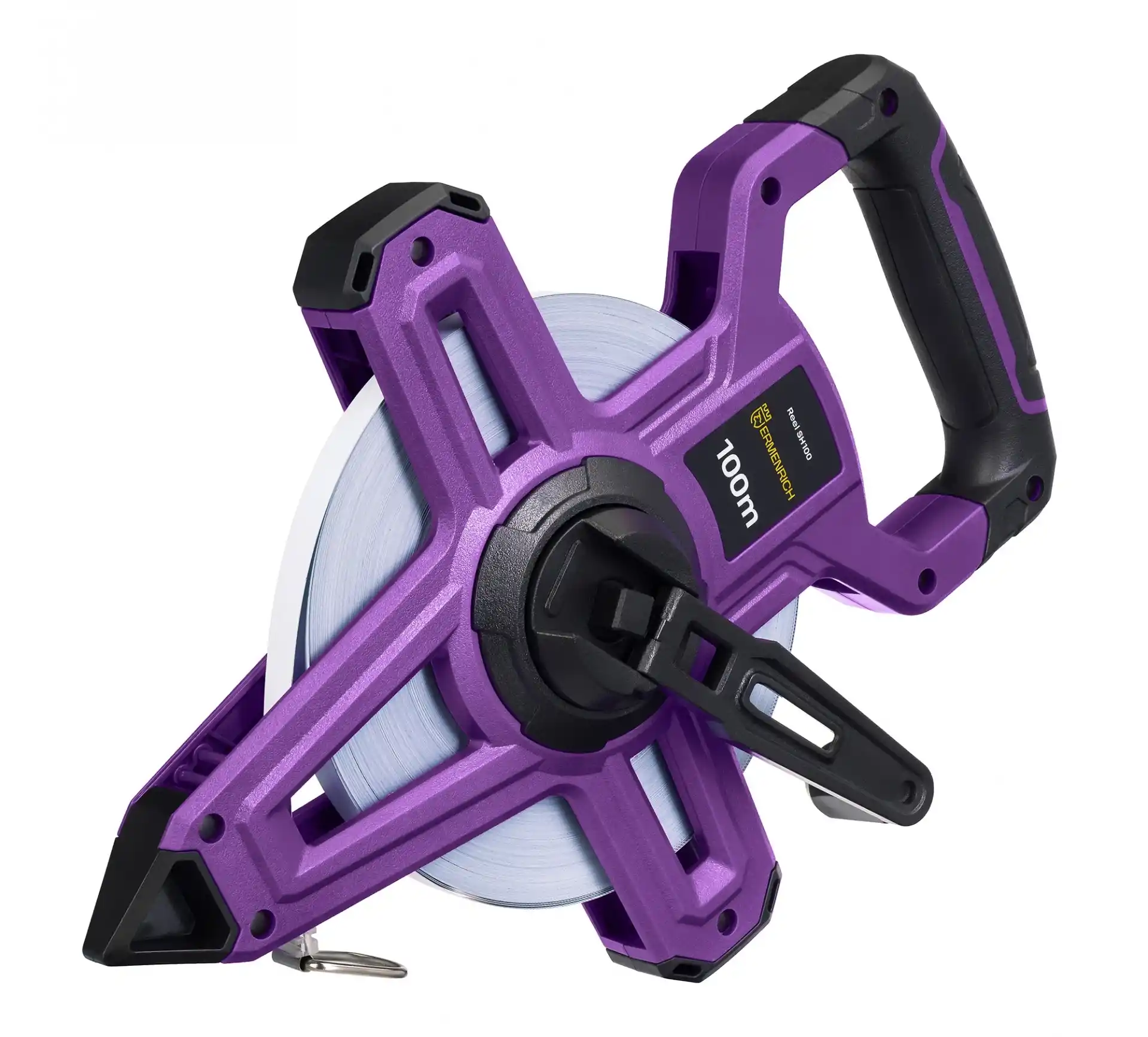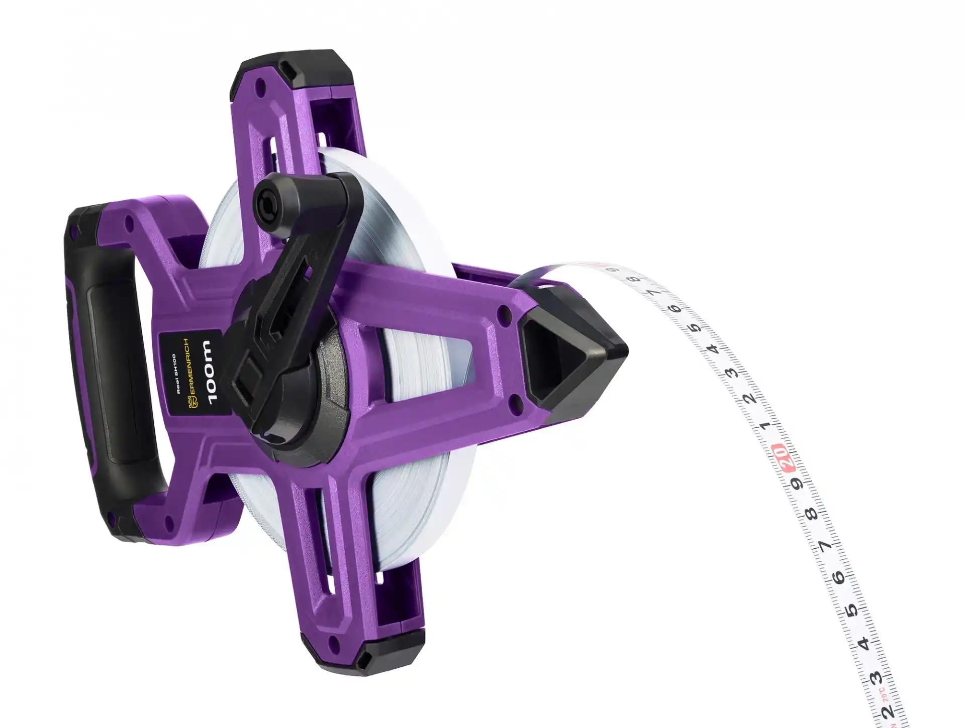 Her türlü doğrusal ölçüm görevi 100 m’ye kadar uzayan Ermenrich Reel SH100 ile mümkün olacaktır. Tek taraflı işaretlere sahip güçlendirilmiş beyaz şerit oldukça okunaklı işaretlenmiş çizgi ve sayılar ile donatılmıştır. Aleti konik tarafından toprağa sabitleyerek şeridi kolayca istenilen mesafeye kadar açabilirsiniz. Ölçüm tamamladığında şerit kendinden kilitleme mekanizması ile donatılmış bir düğme kullanılarak geri sarılabilir.