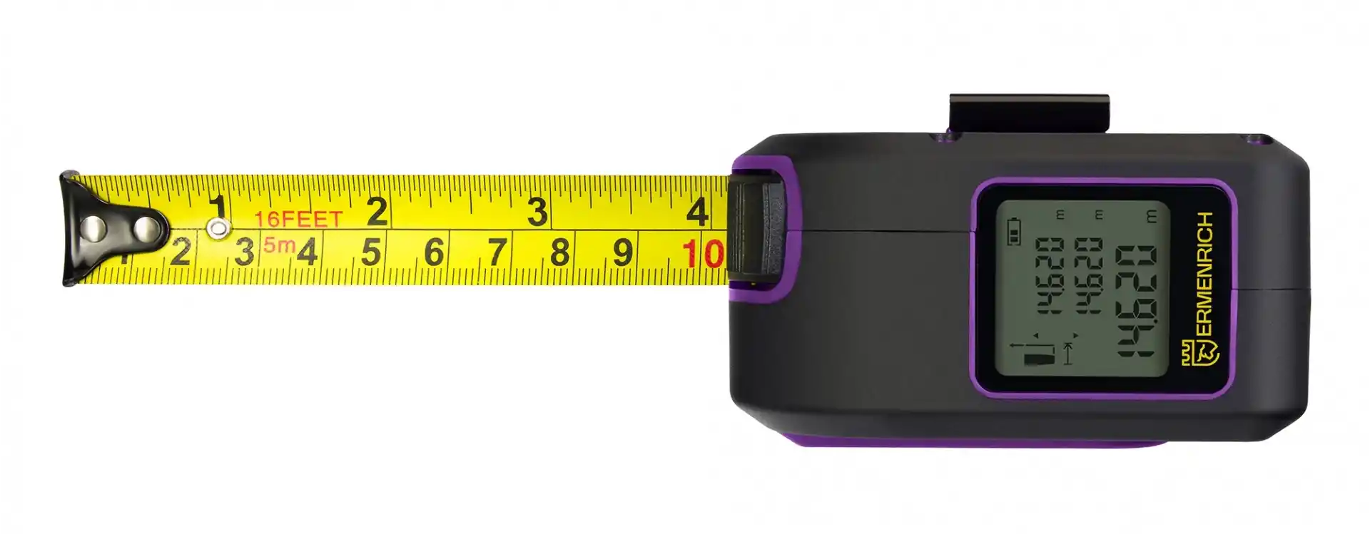 Ermenrich Reel SLR640 Lazer Şerit Metre, bir nesnenin, yapının veya arsanın uzunluğunu, yüksekliğini ve genişliğini ölçebilir ve alanını ve hacmini hızlı bir şekilde hesaplayabilir. Tadilat ve inşaat işleri ile iç dekorasyon, marangozluk ve ağaç işleri, ekipman montajı ve diğer birçok faaliyet için kullanılan pratik bir araçtır. Cihaz evde ve profesyonel kullanım için uygundur.
