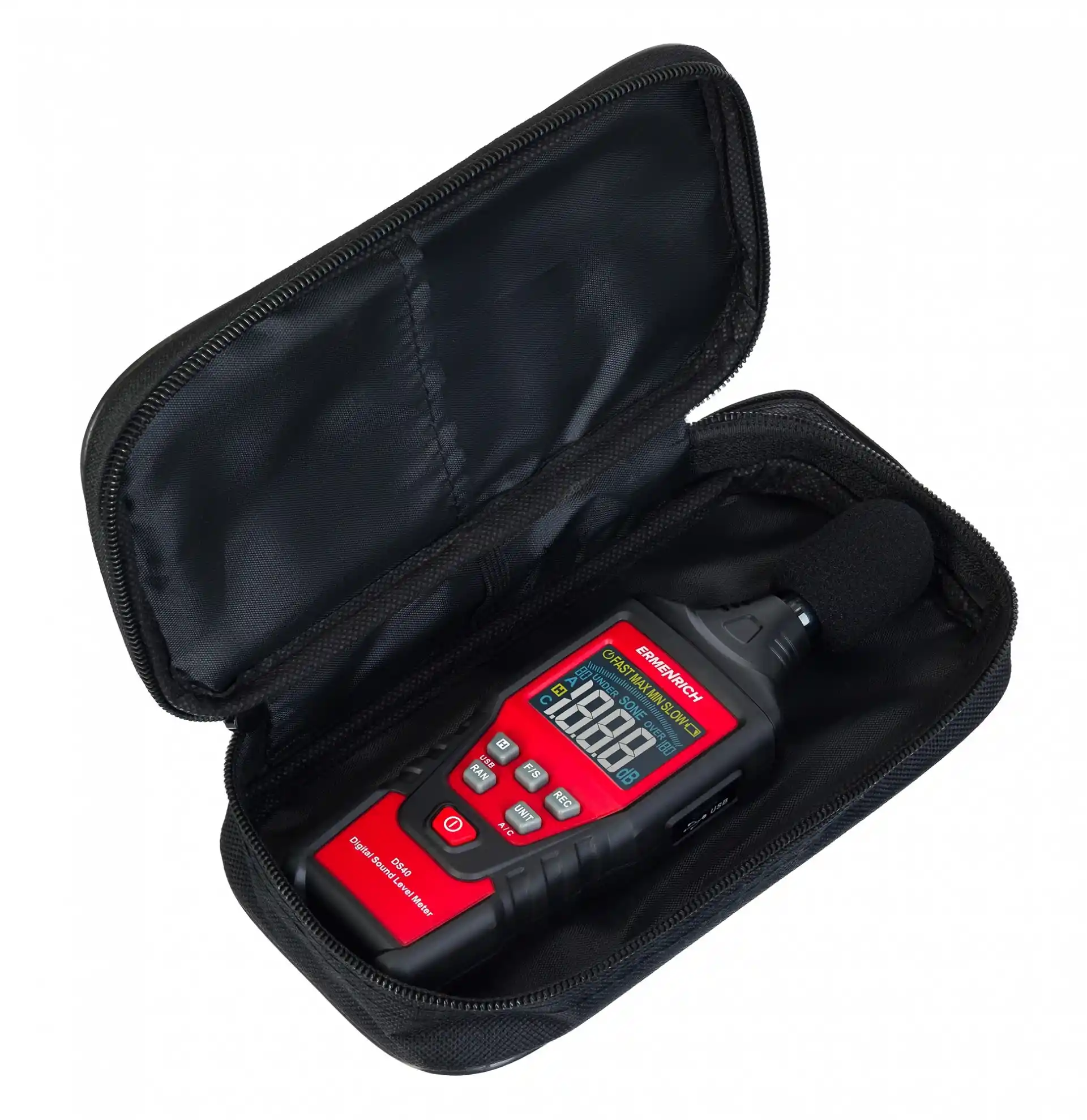 Ermenrich Seek DS40 Dijital Ses Seviyesi Ölçer, iç ve dış ortamlardaki gürültü seviyelerini ölçmek için tasarlanmıştır. 30 ila 130 dB arasında değişen ses seviyesi ölçümleri, yerleşim alanları, iş yerleri, ulaşım ve endüstriyel alanlardaki gürültü seviyelerini izleyip kontrol etmenize olanak sağlar.