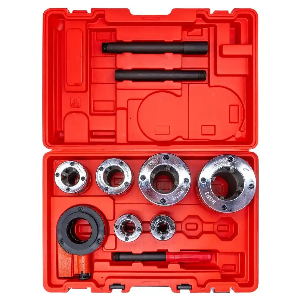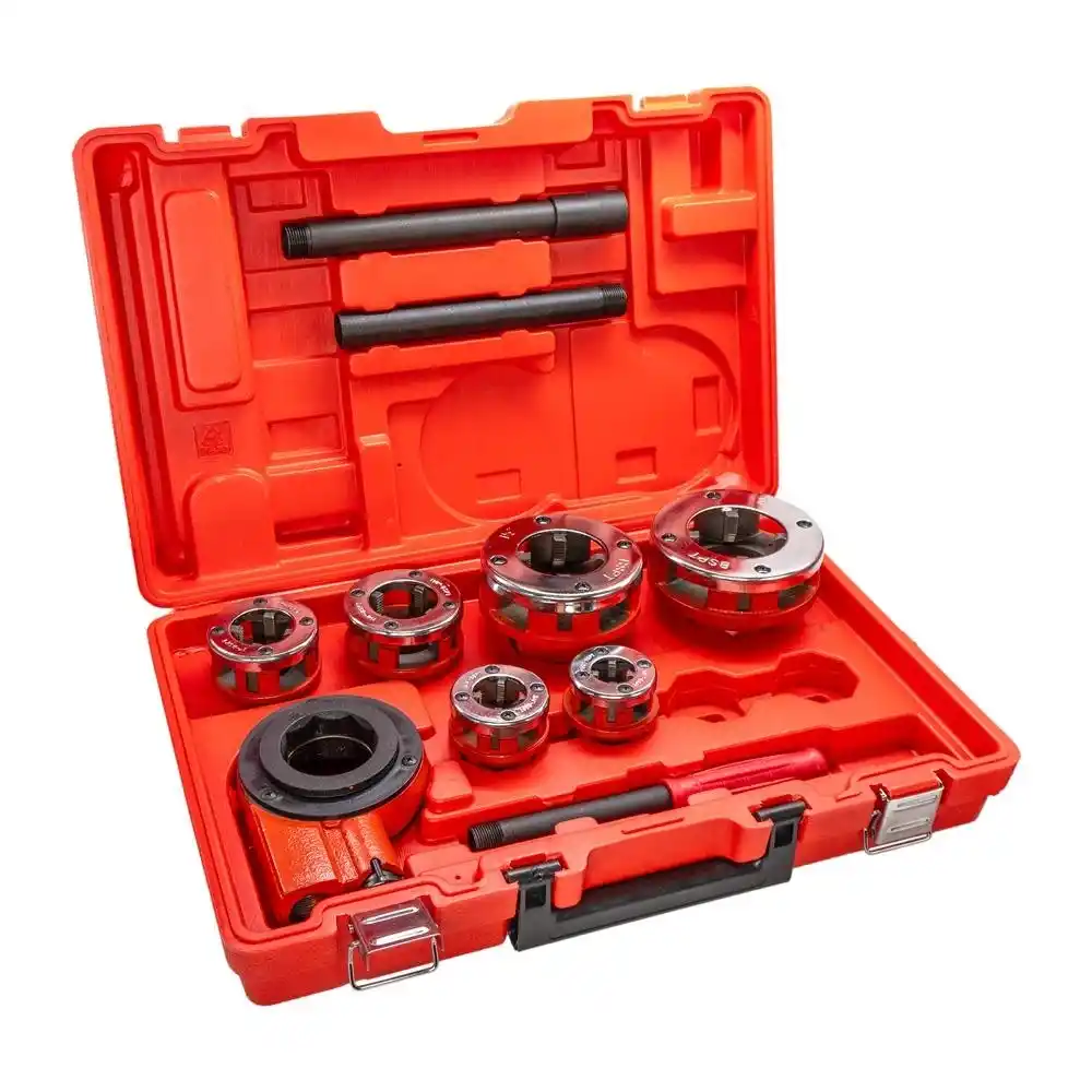 Euromax WT1055; metal boruların uçlarına sızdırmaz bağlantı dişleri açmak için tasarlanmış, 1/2 inçten 2 inçe kadar genişleme kapasitesine sahip profesyonel bir manuel cırcırlı pafta takımıdır.