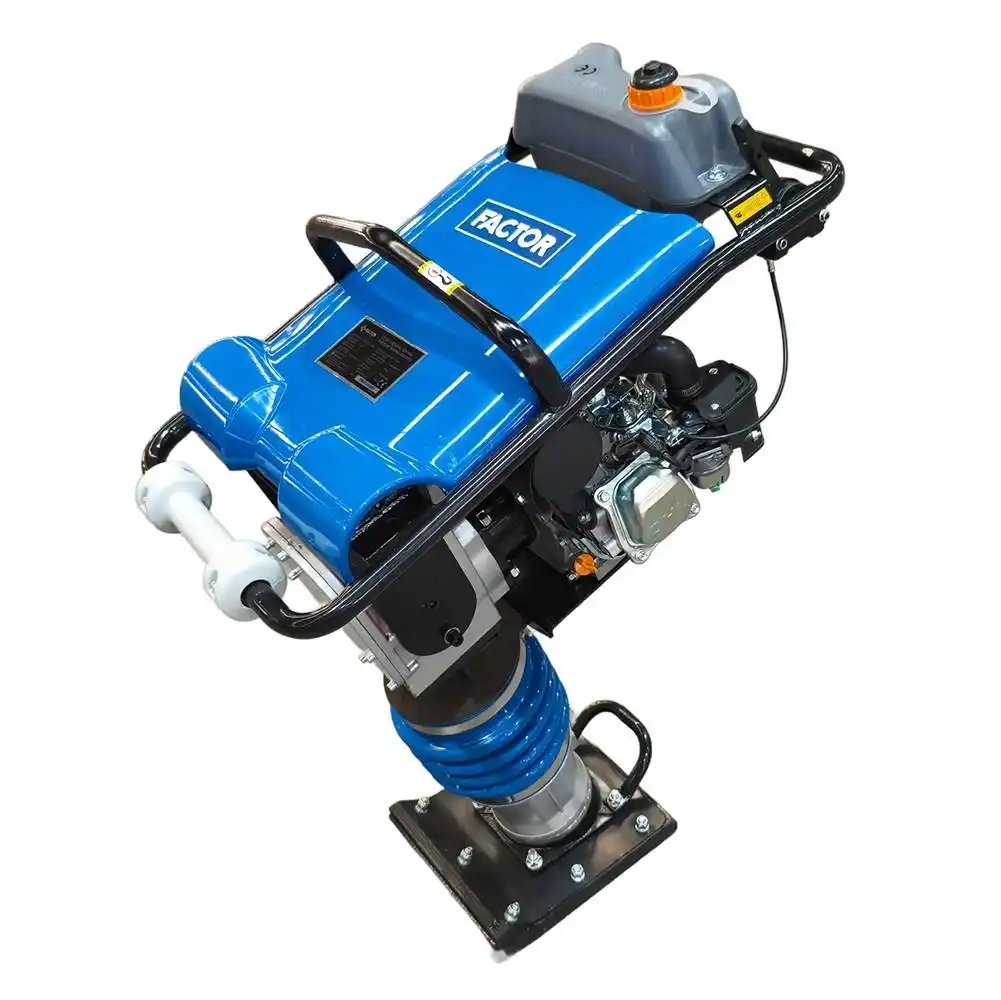 Factor CZT10L, 5.5 HP gücündeki Loncin motoru ve 10 kN vurma kuvvetiyle, hendeklerde, kanalizasyon hatlarında ve dar temel alanlarında zemini yüksek yoğunlukla sıkıştıran endüstriyel bir zıp zıp tokmağıdır.