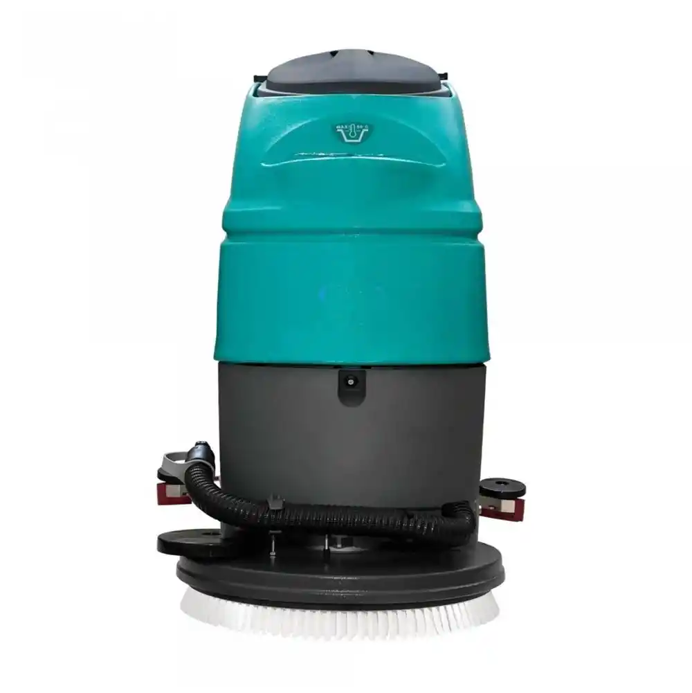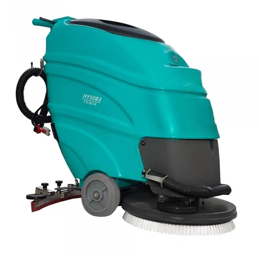 Factor HY50B3, geniş iç mekan zeminlerinin tek bir geçişte hem fırçalanması hem de vakumlanarak kurutulması için tasarlanmış arkadan itişli (walk-behind) profesyonel bir temizlik makinesidir. 24V DC voltajla çalışan bu akülü sistem, temiz su deposundan aldığı deterjanlı suyu zemine iletir, güçlü 550W fırça motoruyla kirleri çözer ve arkadaki 760 mm genişliğindeki emiş başlığıyla atık suyu anında vakumlayarak zemini kuru ve güvenli bırakır.