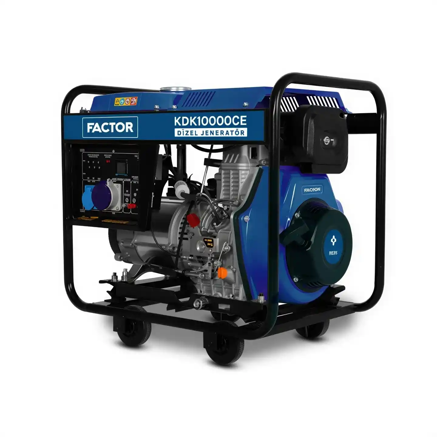 Factor KDK10000CE; 9.4 kVA maksimum güç kapasitesine sahip, tek fazlı (monofaze) elektrik üreten, dizel motorlu ve elektrikli marş sistemine sahip profesyonel bir güç ünitesidir.