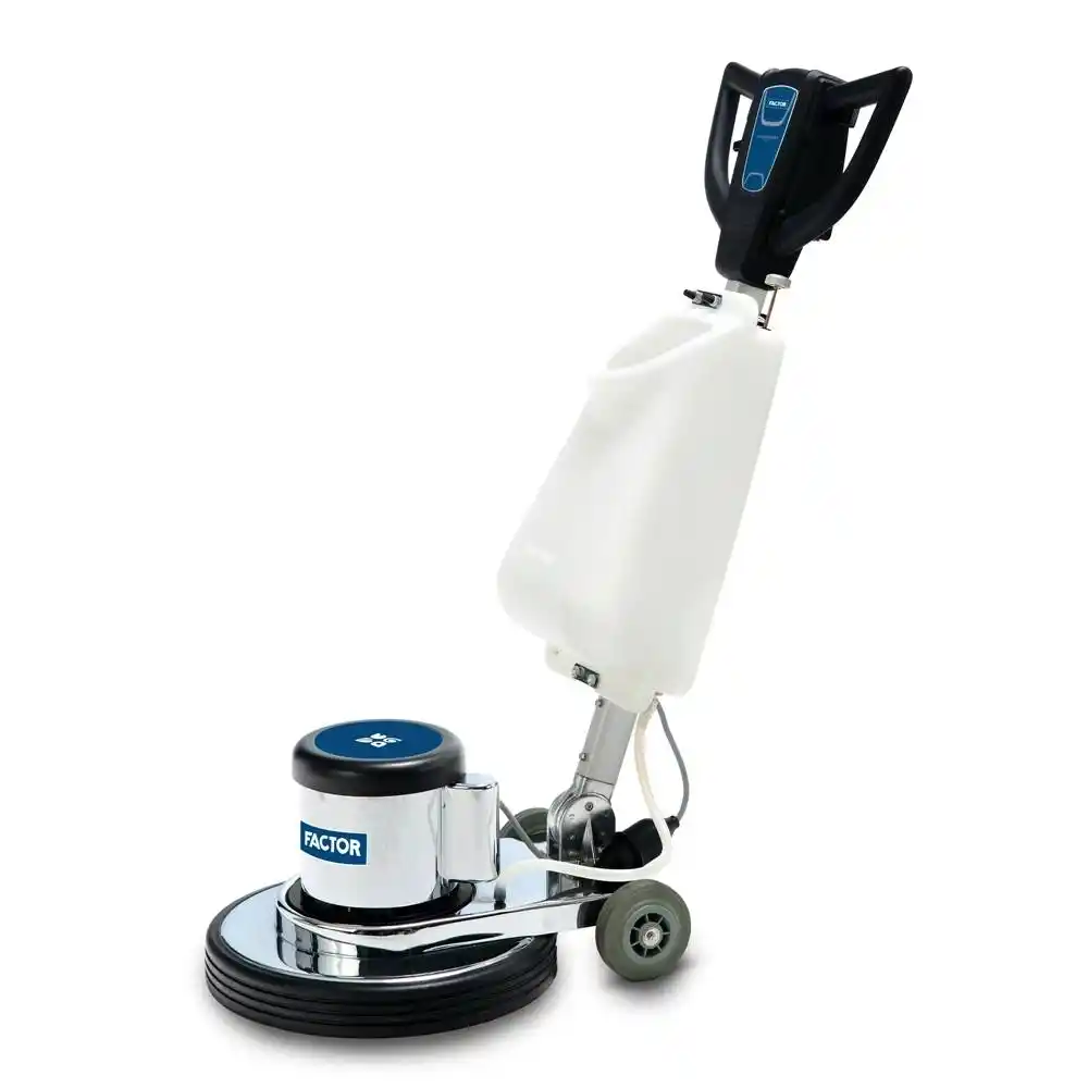 Factor PC200, mermer, granit ve karo gibi sert zeminlerin hem yıkanması hem de cilalanması için tasarlanmış, paslanmaz çelik gövdesi sayesinde kimyasallara karşı maksimum direnç gösteren profesyonel bir zemin bakım makinesidir.