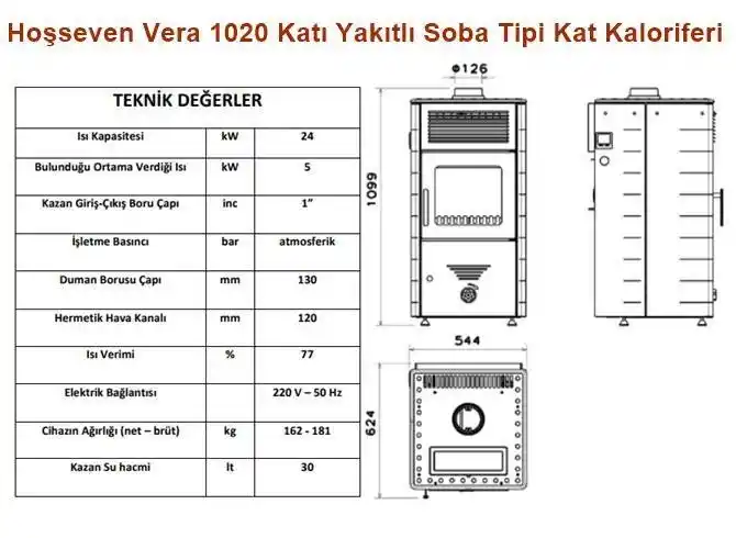 Hem bulunulan ortamı ısıtıp hemde diğer odalarınızı radyatörle ısıtmak, verimli bir yakıt kullanmak için ideal bir ürün olan Hoşseven Vera 1020 Katı Yakıtlı Soba Tipi Kat Kaloriferi 2 yıl garanti ile satılmaktadır. Yaygın servis ağı ile satılan Hoşseven Vera 1020 Katı Yakıtlı Soba Tipi Kat Kaloriferi yanarken sobanın üst kısmı döküm olduğu için burada su ısıtabilir, yiyecekleri ısıtma yapabilirsiniz. Hoşseven soba tipi kat kaloriferleri yakıtlarınızın verimli ve ekonomik olarak kullanılmasını temin eder. Mekanik hava ayarı sayesinde sobayı istediğiniz sıcaklıkta kullanma imkanınız vardır. Hoşseven Vera 1020 Katı Yakıtlı Soba Tipi Kat Kaloriferinin bulunduğu ortamı ısıttığı için buraya radyatör bağlamanıza gerek kalmaz.