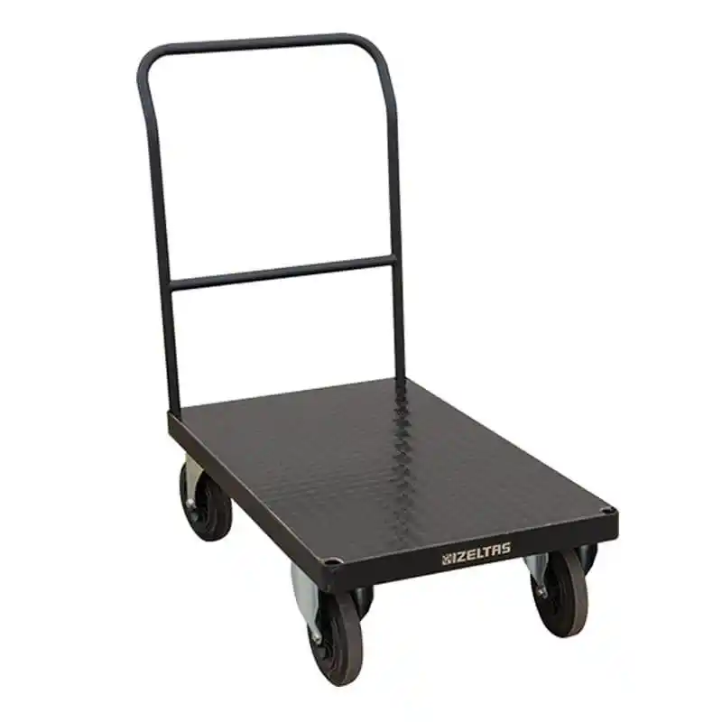 Teknik Detay Çelik konstrüksiyon 18MM Plywood tabla (kauçuk mat ile birlikte) 2X Sabit, 2X Hareketli frenli tekerlek (125mm)
