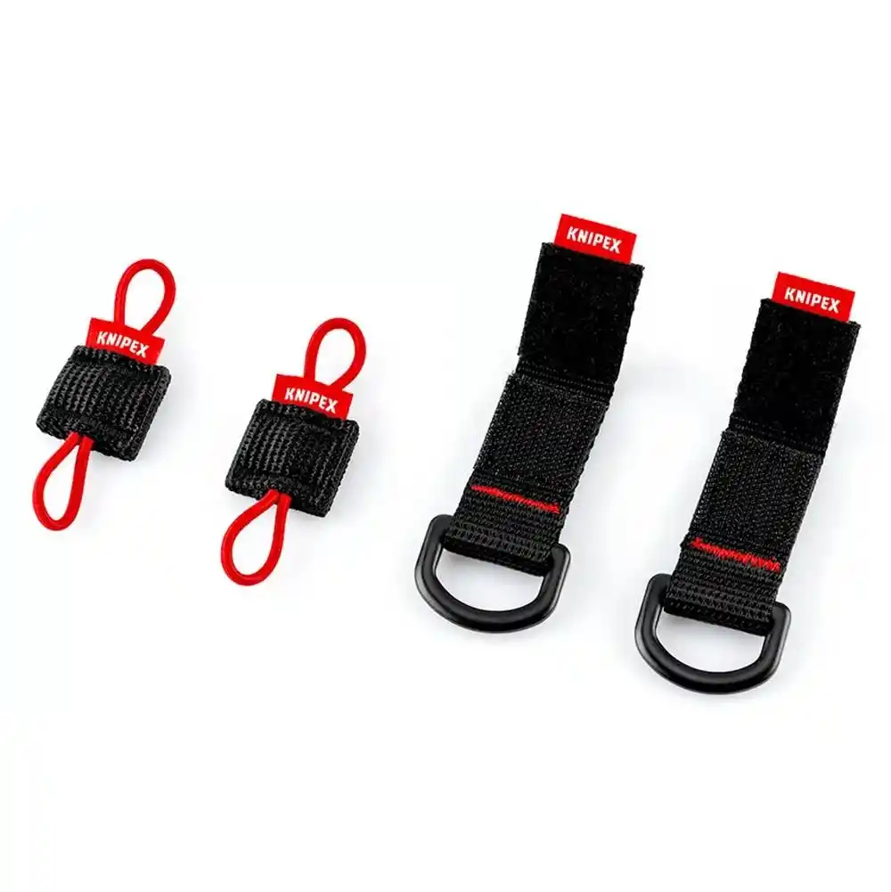 4 modül adaptörlü takım: 2 adet D halkalı, 2 adet iki kauçuk halkalı Her birinde 00 21 50 KNIPEX Modular X18 alet çantasının MOLLE kayışlarına sabitlemek için iki sağlam kumaş kayış bulunur Ek bağlantı noktaları: Pratik sırt çantası tokaları sayesinde anahtarlık gibi çok sayıda eşyayı ayrı ayrı takabilirsiniz