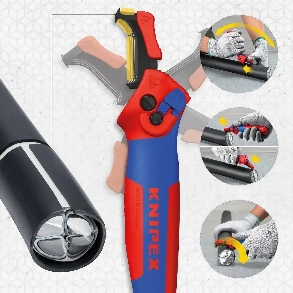 7 mm'ye kadar duvar kalınlığına sahip çok sert veya dayanıklı plastik kılıfları keser.