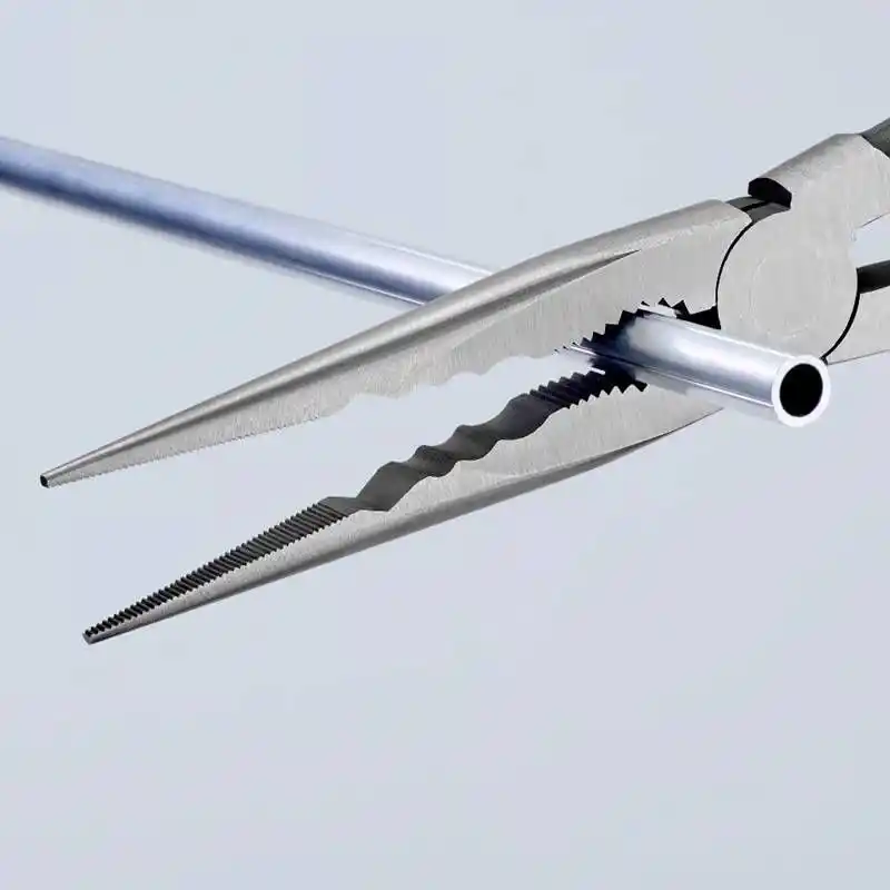 Knipex kalitesi ve mükemmel işçilikle tasarlanan Knipex 28 71 280 Uzun Kargaburun, küçük çaplı bakır borular, civata ve kablolar gibi iş parçalarını güvenli ve zarar vermeden kavramanıza olanak tanır. Freze ile açılmış düz yüzeyli oluklar, iş parçasına zarar vermeden sıkıca kavrama imkanı sunar.