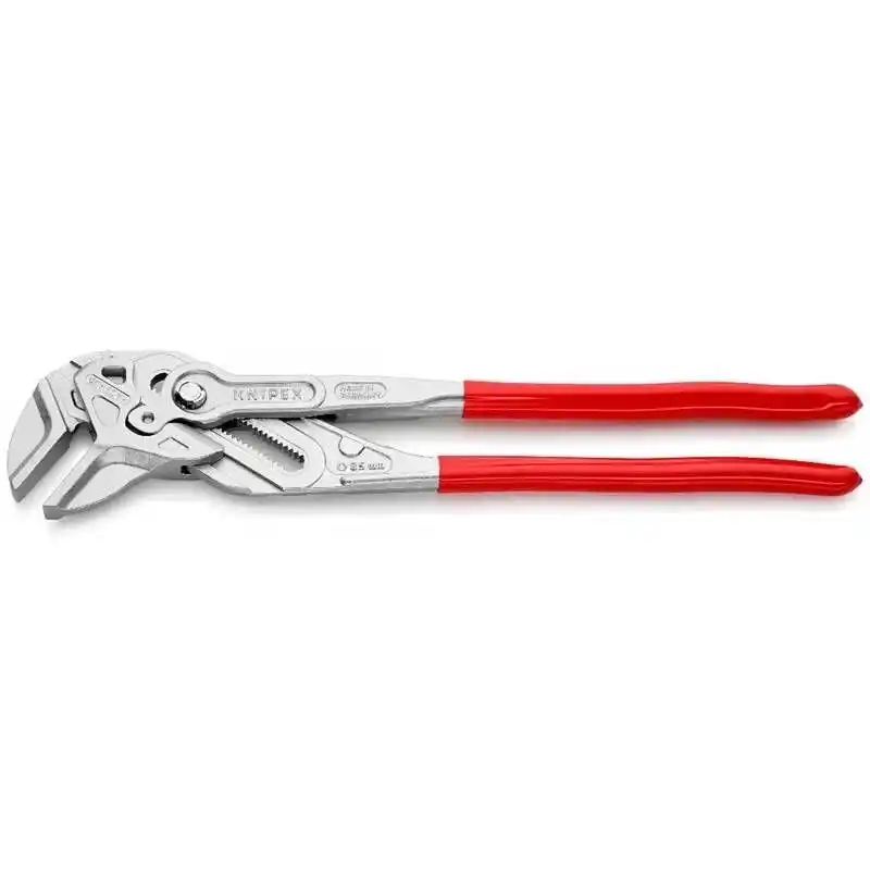 Knipex 86 03 400 Düz Çene Ayarlı Pense, montaj işleriniz için eşsiz bir araç olarak öne çıkar. Şimdi 400 mm'lik boyutuyla daha fazla kavrama gücüne ve iş parçasına daha iyi uyuma sahiptir. Bu pense, 85 mm'ye kadar olan ağız genişlikleri için idealdir ve iş parçalarının kavranması, tutulması, sıkıştırılması ve bükülmesi gibi birçok işlemde kullanışlıdır.