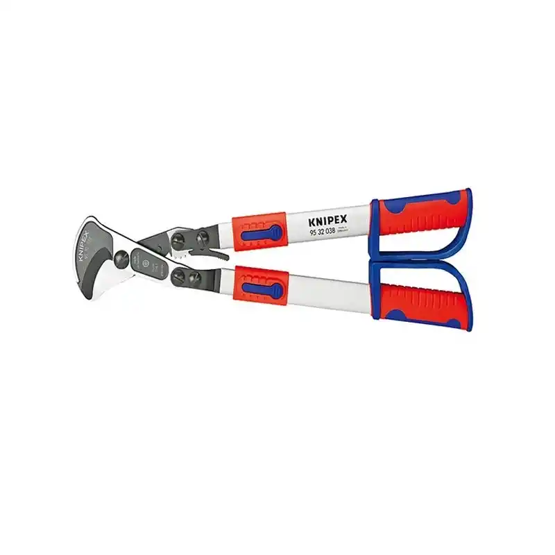 Knipex 95 32 038 Teloskopik Kollu Cırcırlı Kablo Makası, yüksek kaliteli ve kullanışlı bir kablo kesme aracıdır. Ayar ve açılı teleskobik kollu tasarımı sayesinde, farklı kablo çapları için optimum kol açıklığını ayarlamak mümkündür. Bu özellik, dar çalışma alanlarında da rahat bir şekilde kullanılmasını sağlar.