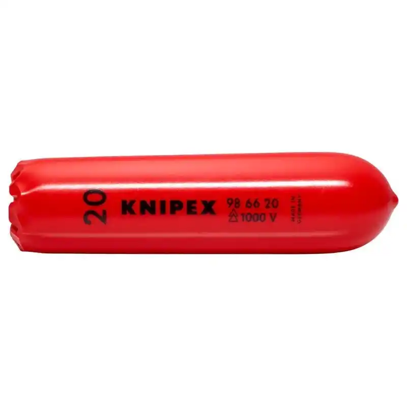 Knipex 98 66 20 Kendinden Kelepçeli 100mm Manşon, gerilim taşıyan izolasyonu sıyırılmış iletkenlere dokunmaya karşı koruma sağlar. Elektrik alanında çalışırken güvenliğinizi ve etkinliğinizi artıran bu özel ürün, profesyonel elektrikçilerin tercihi olmaya aday!
