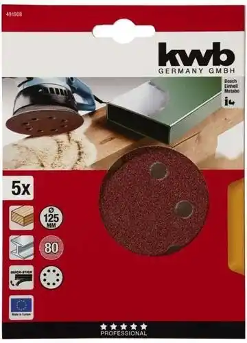 "KWB QUICK-STICK bileme diskleri, WOOD & METAL, korindon, Ø 125 mm, delikli, 80 - 491908