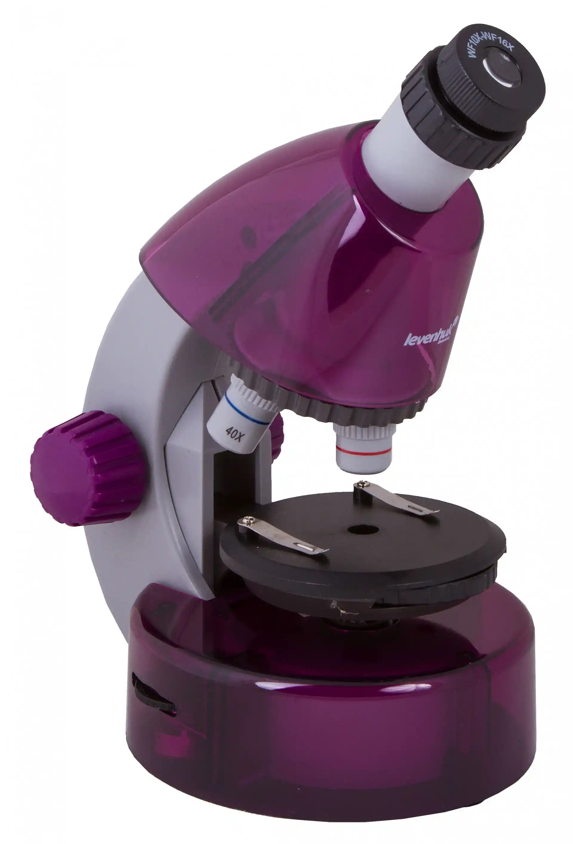 Bu mikroskop, akvaryum su damlası, ince bitki kesitleri veya hazırlanmış mikroskop slaytları gibi saydam numunelerin gözlemlenmesine olanak tanır. Nesneler, kullanışlı yuvarlak lamel yuvasının üzerine yerleştirilmeli ve iki klipsle sabitlenmelidir. Bu klipsler sayesinde incelenen numune her zaman yerinde kalacaktır. LED diyotlarının (lamel yuvasının altında bulunur) yaydığı ışık numunenin içinden geçerek göz merceğinde büyütülmüş bir görüntü oluşturur. Parlaklık seviyesi ayarlanabilir.