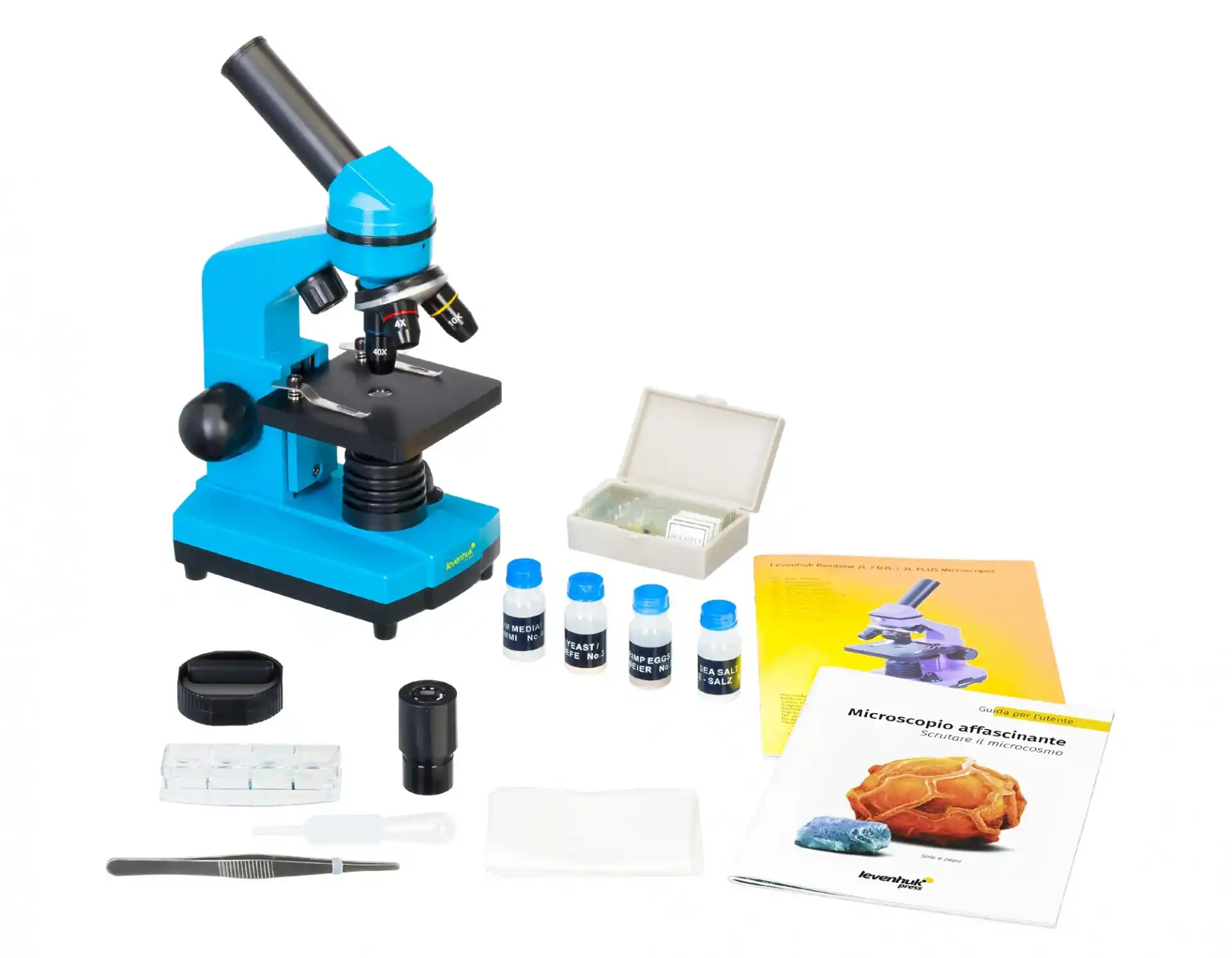 Ürünle birlikte verilen Levenhuk K50 Deney Seti sayesinde genç bilimciler araştırmalarına nereden başlayabileceklerini bulmakta zorlanmayacak. Kit, hazırlanmış mikroskop slaytlarını, tüm gerekli araçları ve mikroskopun yapısı ile ilgili tüm gerekli bilgilerle birlikte, yeni mikroskop slaytlarının hazırlanması ile ilgili önerileri ve ilgi çekici deney açıklamalarını barındıran renkli bir kılavuz içerir.
