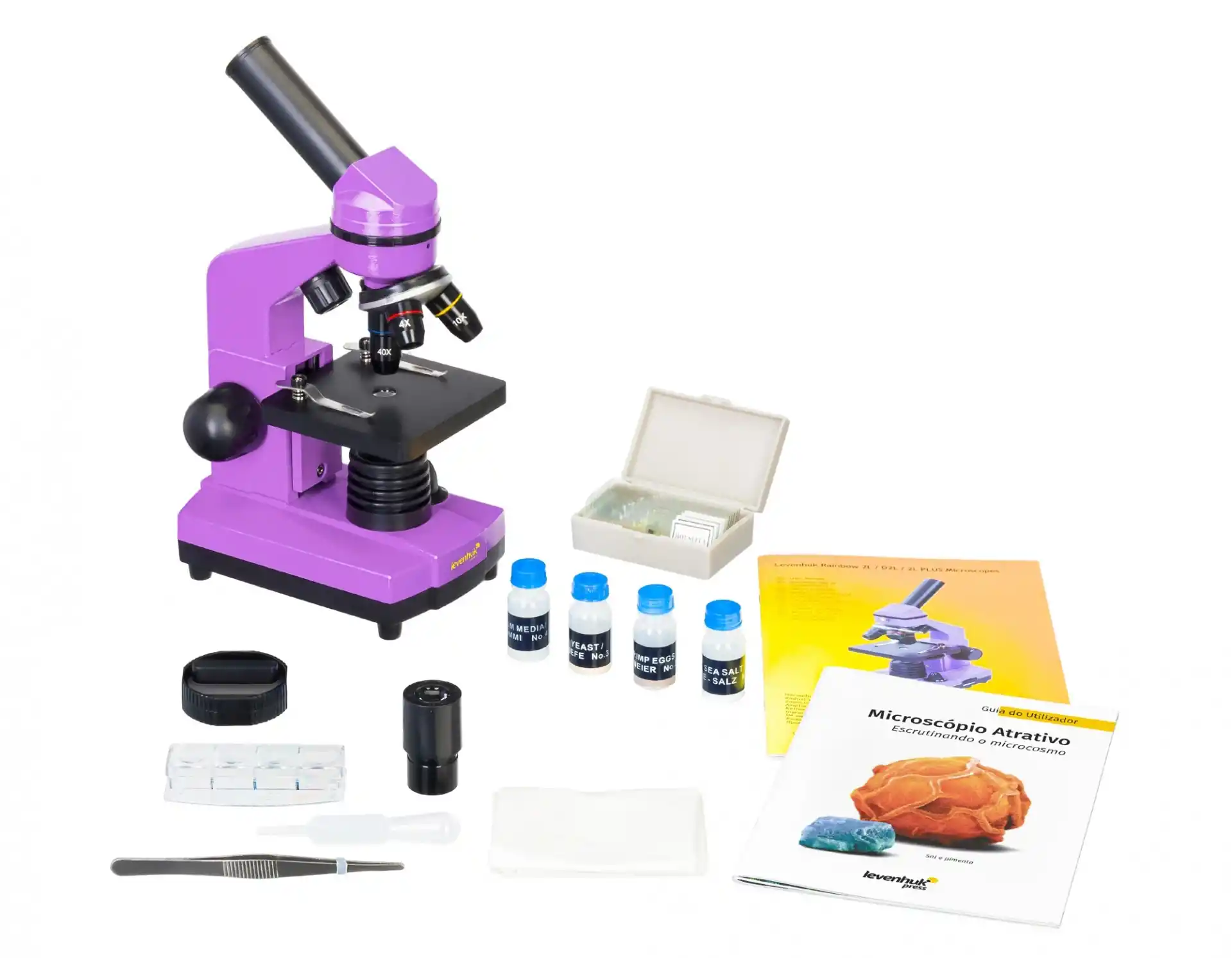 Ürünle birlikte verilen Levenhuk K50 Deney Seti sayesinde genç bilimciler araştırmalarına nereden başlayabileceklerini bulmakta zorlanmayacak. Kit, hazırlanmış mikroskop slaytlarını, tüm gerekli araçları ve mikroskopun yapısı ile ilgili tüm gerekli bilgilerle birlikte, yeni mikroskop slaytlarının hazırlanması ile ilgili önerileri ve ilgi çekici deney açıklamalarını barındıran renkli bir kılavuz içerir.