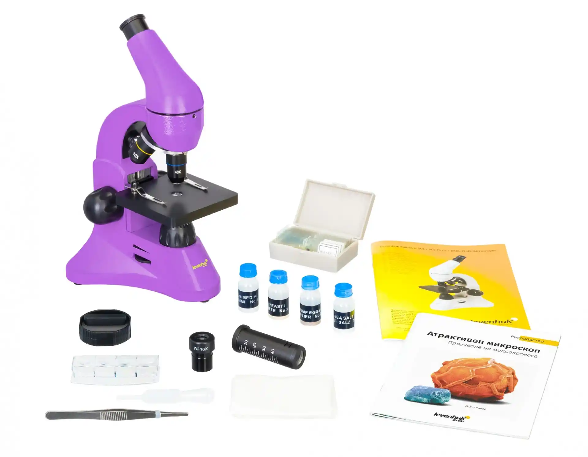 Mikroskop, bu alanda çalışmaya yeni başlamış kişiler için olduğu gibi deneyimli kullanıcılar için de harika bir seçimdir. Levenhuk K50 Deney seti, ilk deneylerini yapmalarına yardımcı olacak ve mikro dünya hakkında birçok yeni şey öğrenmelerini sağlayacaktır.