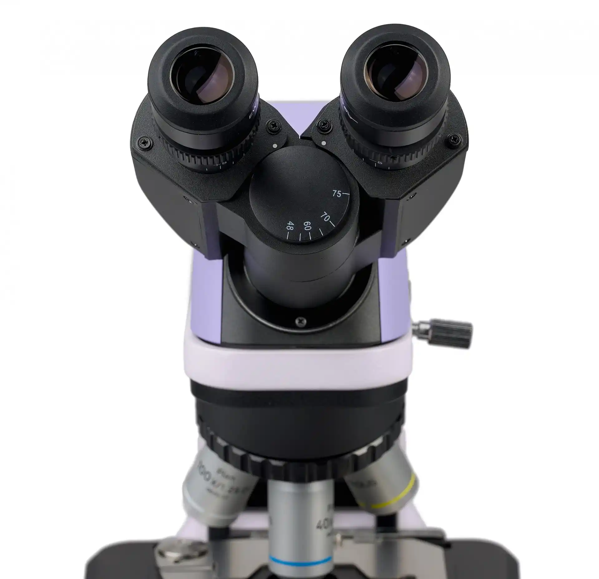 Başlık iki göz merceğini alacak şekilde ve sonsuz optik sistem benimsenerek geliştirilmiştir. Başlıktaki tüpler kendi eksenleri çevresinde tam dönüş yapabilir ve göz mesafesi kullanıcının boyuna göre ayarlanabilir. Mikroskop 2 adet standart 10x/20 mm göz merceği ile temin edilmektedir. Set, ayrıca gözlüklü kullanıcılara yönelik kauçuk vizörler içermektedir: Vizörler, gözlük mercekleri ile göz mercekleri arasında bir katman olarak görev yapmanın yanı sıra, optik parçaları aşınma, çizilme ve hasarlara karşı korumaktadır. Her tüp bir diyopter ayar halkası ile donatılmıştır: Odağı görüşünüze göre ayarlayabilirsiniz. Her göz merceği diğerinden bağımsız olarak ayarlanabildiğinden, bu özellik, iki gözünde de görüş farklı olan araştırmacılar için özellikle kullanışlıdır. Mikroskoba bir dijital kamera bağlanması gerektiğinde, bu kamera bir göz merceği çıkarılarak tüplerden herhangi birine yerleştirilebilir.