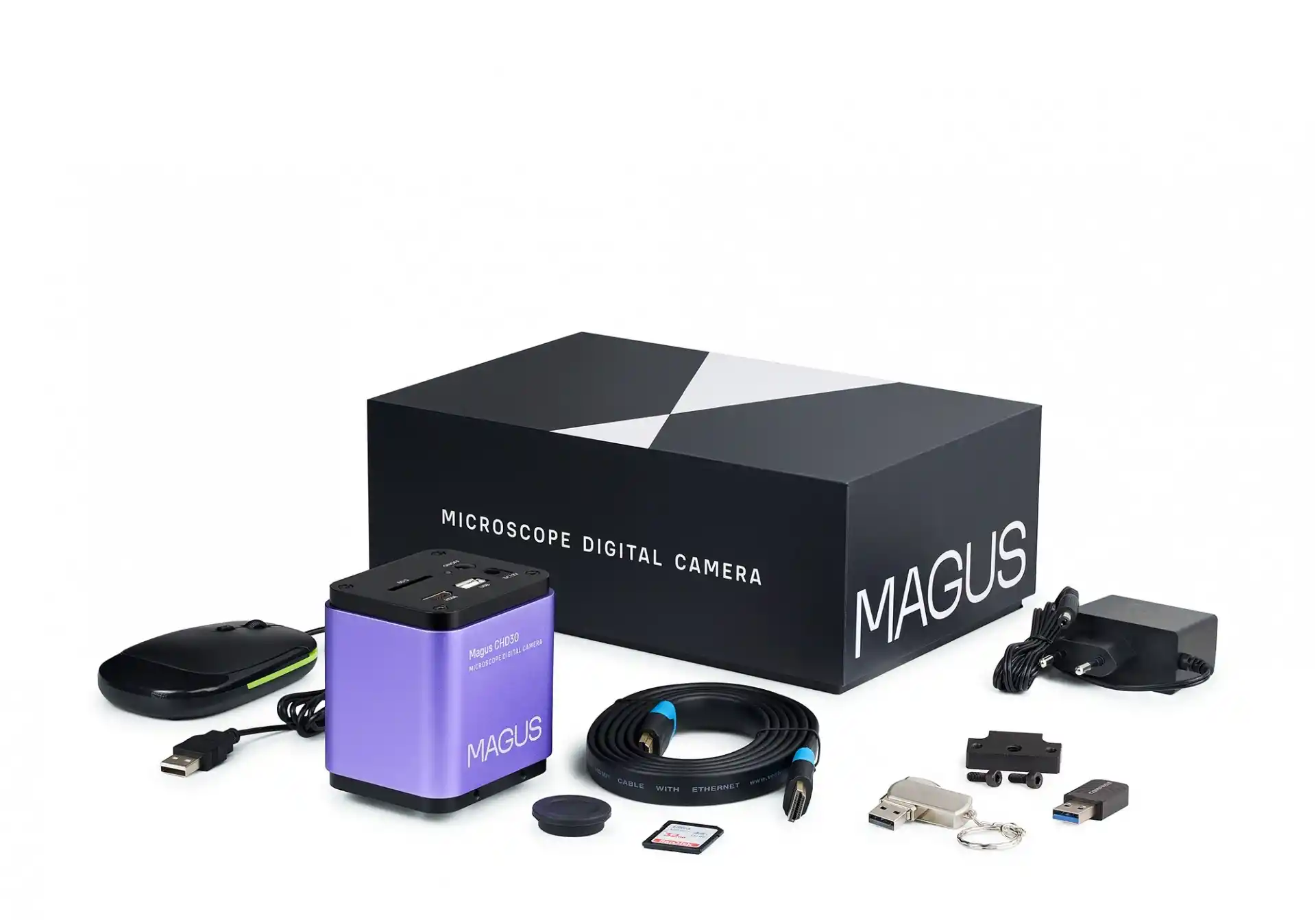 MAGUS CHD30, mikroskopla çalışmak için tasarlanmış bir kameradır. Onun yardımıyla, gözlemlenen nesnenin fotoğraf ve video materyallerini oluşturabilir, bunları düzenleyebilir ve hatta ölçümlerini alabilirsiniz. Bu kameranın önemli özelliği, Wi-Fi aracılığıyla bir bilgisayarla ve HDMI arayüzünü kullanarak harici bir ekranla eşleştirilebilmesidir. Kare hızı sırasıyla 25 veya 60 fps’tir. Harici bir ekran bağlandığında kamera otomatik olarak nesneye odaklanır, böylece çekim daha kolay hale gelir ve daha iyi sonuçlar elde edilir. Cihaz bağımsız olarak çalışabilme ve Full HD görüntü (1920x1080 piksel) oluşturabilme özelliğine sahiptir. Yüksek kare hızı ile Full HD birleşimi, parazit veya bozulma olmadan yüksek kaliteli bir görüntü oluşturur.