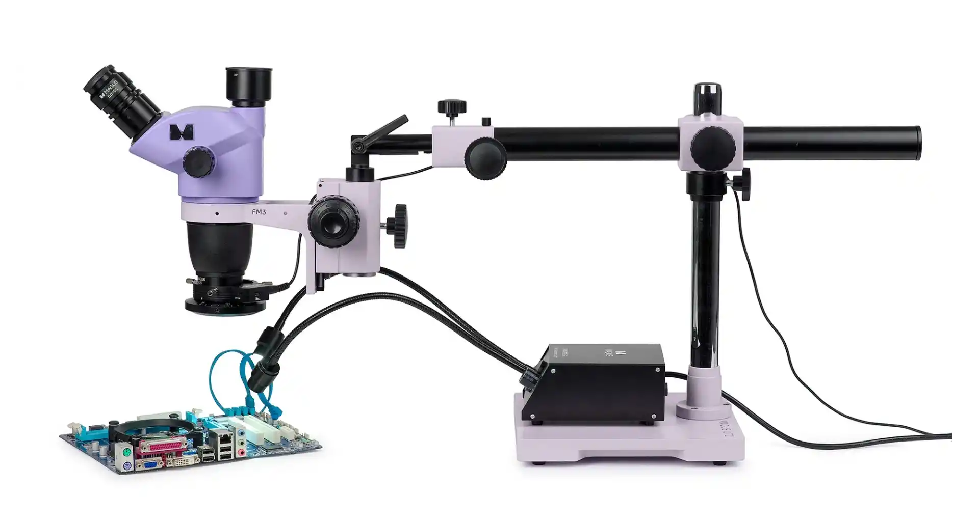 Lehimleme, onarım ve kalite kontrol için hazır çözüm, MAGUS Stereo 8H serisi mikroskop başlığı ve genel MAGUS UT2 mikroskop sehpasından oluşur.