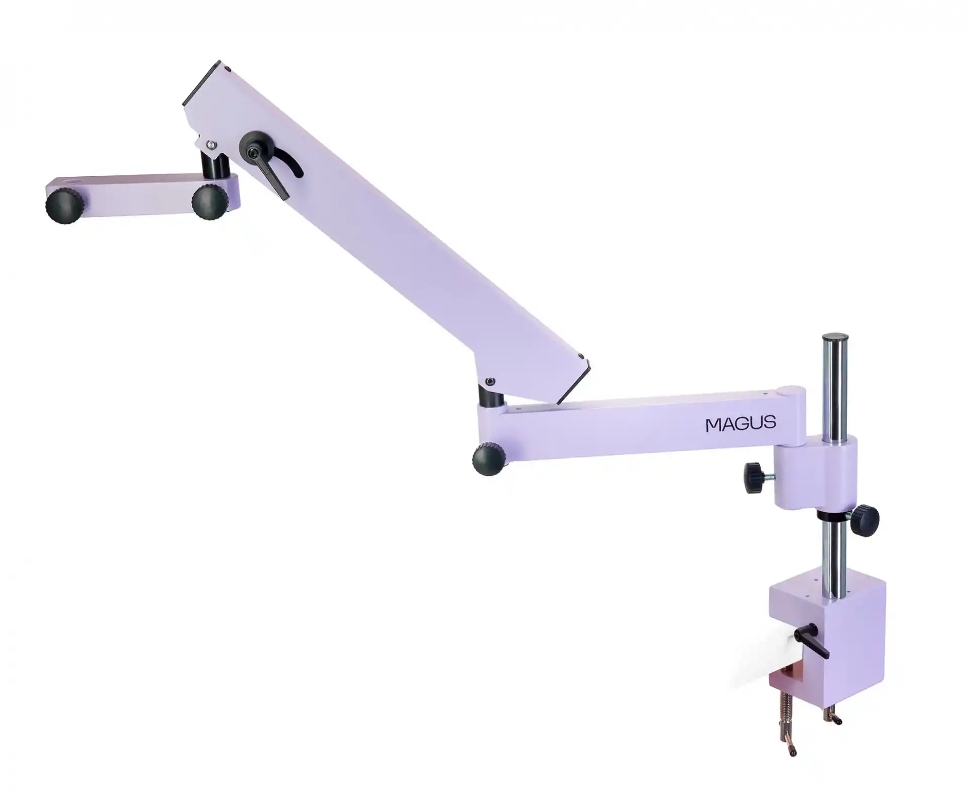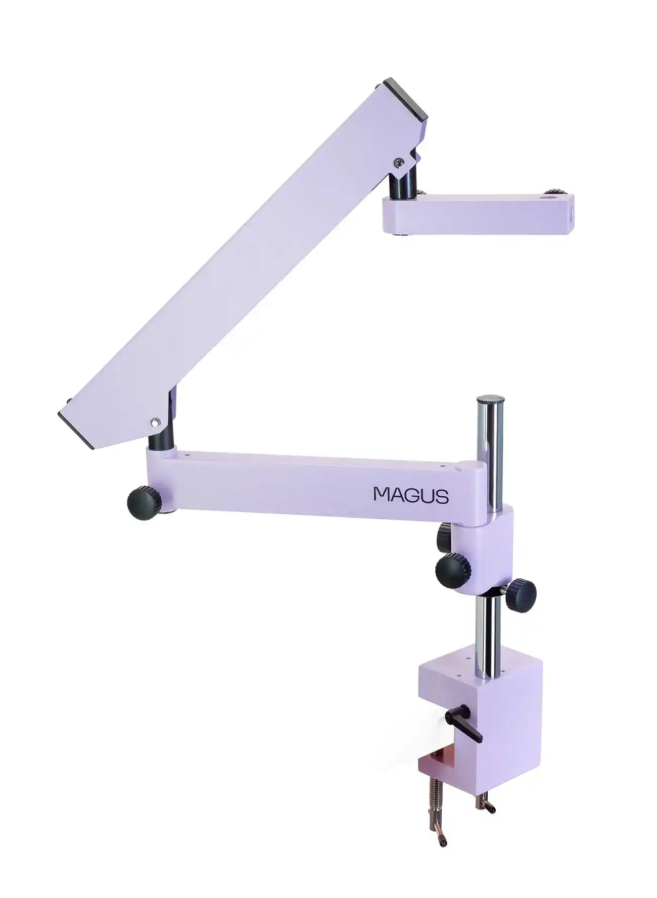 MAGUS UT1 sehpa dört kısma sahiptir ve çalışma masasının kenarına dayanıklı bir kelepçe ile takılır. Yüksekliği ve yanlamasına konumunu ayarlayabilirsiniz, dönebilir özelliktedir.