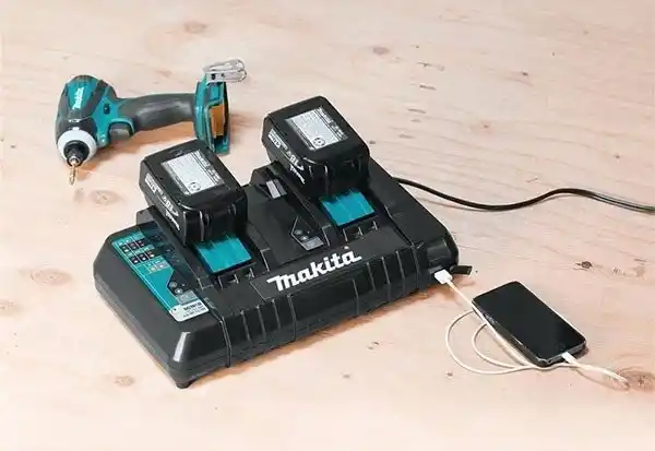 Makita DC18RD çift istasyonlu şarj cihazı aynı anda iki adet 18V Makita lityum akü şarj edebilme yeteneğine sahiptir.