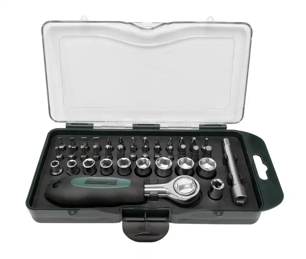 Bu set, dar alanlarda çalışma kabiliyetini artırmak için tasarlanmış 1/4 inçlik bir cırcır mekanizması üzerine kuruludur. Cırcır kolu, vidalama ve sökme yönünü tek elle değiştirebilen mandal yapısına sahiptir. Set içindeki lokmalar somunları tam kavrayarak köşelerin yuvarlanmasını önlerken, bit uçları ise tornavida sapı veya cırcır adaptörü ile kullanılarak her türlü vida standardına (PH, PZ, SL, Torx, Hex) uyum sağlar. Profesyonel "Green Line" serisi olduğu için endüstriyel toleranslarla üretilmiştir.