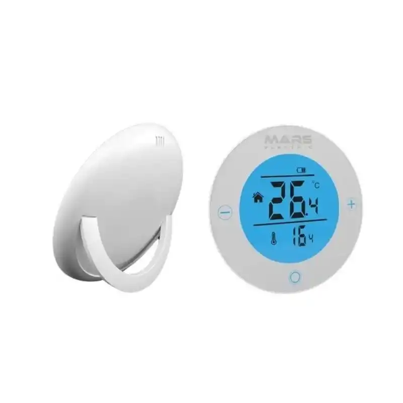 Elektronik dijital ekranlı yuvarlak tip bir oda termostatıdır.