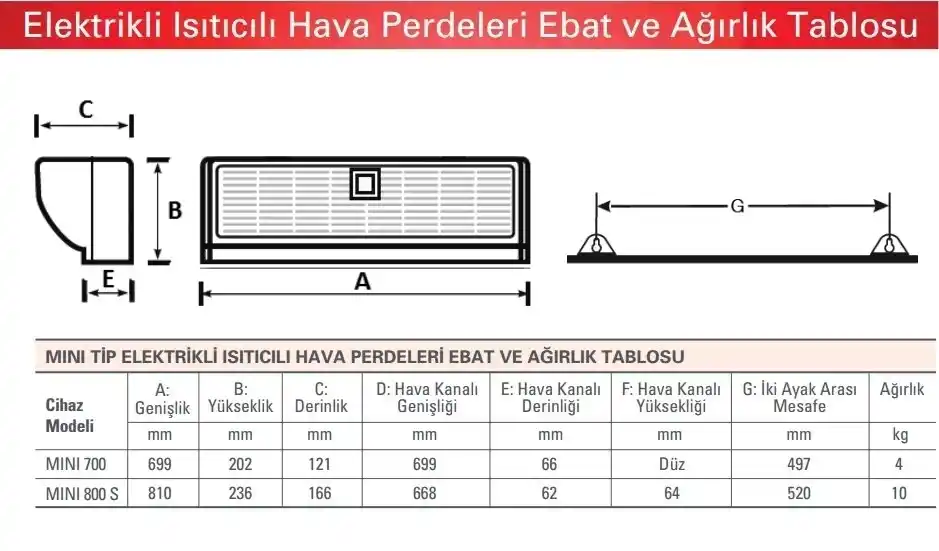 | MINI-700 Mini Tip Hava Perdesi Teknik Özellikler |