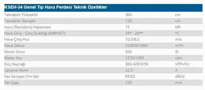 Olefini RSEH 34 Ankastre Elektrik Isıtıcılı 120 Cm Hava Perdesi