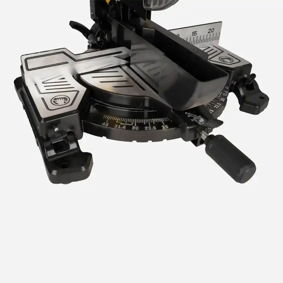Ürün Açıklaması: Yüksek performans sağlayan güçlü motoru ile zorlu kesimleri rahatlıkla yapabilirsiniz. Yüksek devir hızı ile hızlı ve etkili kesim sağlar. Hem üstten hem alttan kesim yapabilme özelliği ile esnek kullanım. 45° sağ ve sol yönlü kesim özelliği ile çeşitli açılarda kesim yapabilirsiniz. Daha hassas kesimler için 45° sol yatar kesim özelliği. Kesilecek malzemenin rahatça kaymasını sağlar ve üst tabla hizalama aparatı ile kusursuz kesim yapabilirsiniz. Alt tablanın sağ ve sol yanlarına takılabilen destek aparatları sayesinde uzun malzemeleri dengeli bir şekilde kesebilirsiniz. Makinenin arka kısmında bulunan toz çıkış haznesine elektrik süpürgesi bağlanarak ortam temizliği sağlanabilir. Emniyet mandalına basmadan makine aşağı yönlü hareket etmeyecektir.