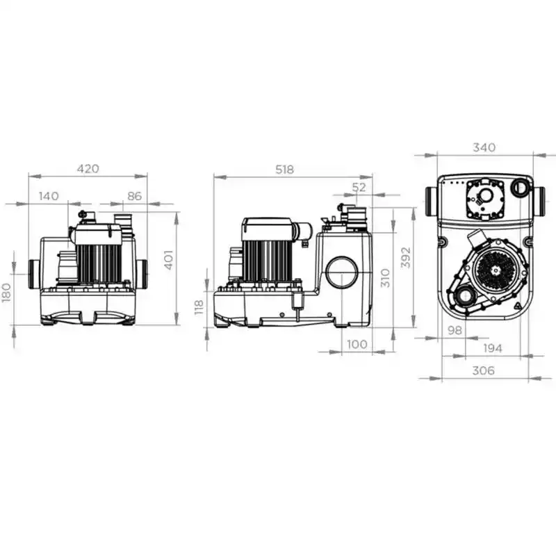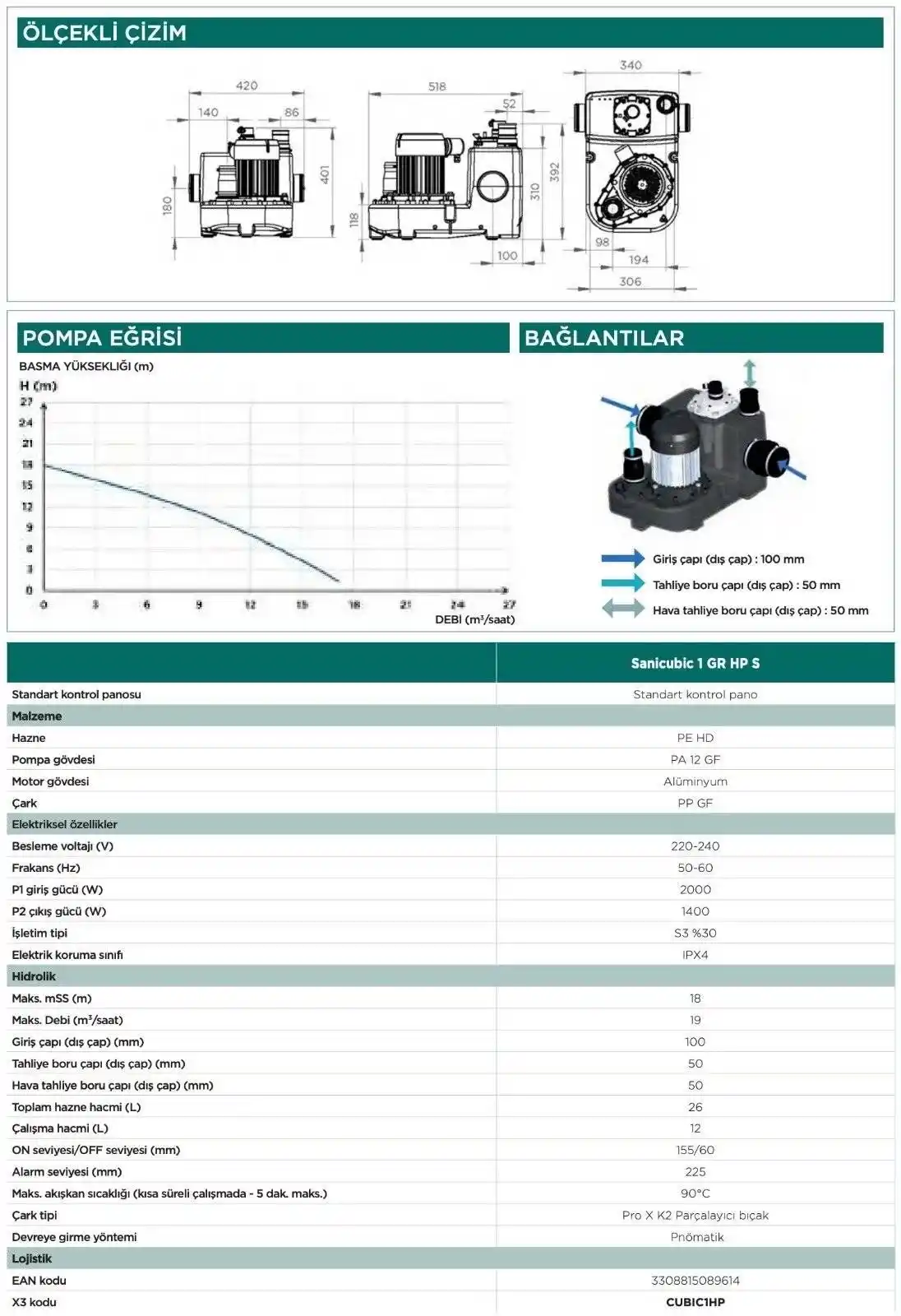 Sanicubic 1 GR ev ve küçük ölçekli işletmeler için uygun bir tahliye istasyonudur. Birden fazla tuvalet, banyo, mutfak veya çamaşırhanelerden gelen tüm atık suları tahliye eder. Pro X K3 yüksek performanslı parçalayıcı bıçak ile donatılmıştır. 7 girişi sayesinde maksimum bağlantı esnekliği sağlar. Sanicubic 1 GR sesli ve görsel uyarı veren harici pnömatik kontrol panosu ile birlikte temin edilir.