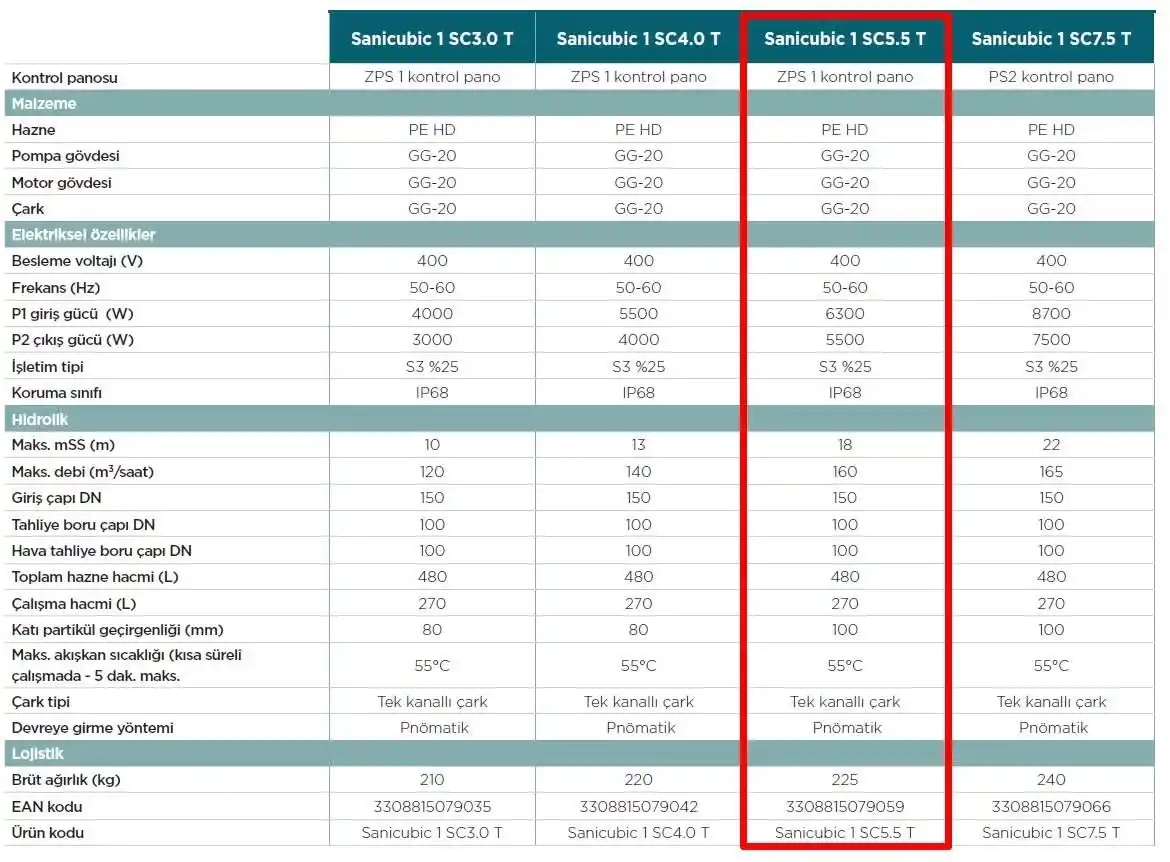 4 farklı pompa versiyonu ile sunulan Sanicubic 1 SC, foseptik içeren suları tahliyeni sağlar.