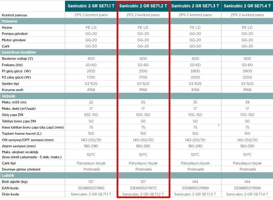 Sanicubic 2 GR SE71.2 T Endüstriyel Foseptik Pis Atık Su Tahliye İstasyonu