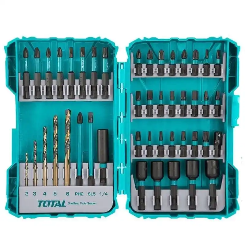 Total TACSDL24502 45 Parça Bits Uç Seti, tamamı yüksek kaliteli materyallerden üretilmiş olan 45 farklı parçadan oluşmaktadır. Bu set içerisinde bulunan darbe tornavida bitleri, adaptörler ve matkap uçları sayesinde ev ve işyerinizdeki birçok işlemi kolaylıkla yapabilirsiniz.