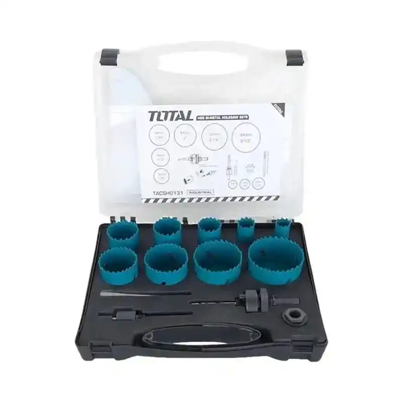 2. 13 farklı boyutuyla Total Bi-Metal Delik Testeresi Seti, çeşitli malzemelerde delik açmak için eşsiz bir çok yönlülük sunar. Çapları 3/4 inçten 2-1/2 inçe kadar değişen bu delik testereleri, kapı kolları ve kilitleri takmaktan borular ve elektrik bağlantı parçaları için açıklıklar oluşturmaya kadar çok çeşitli uygulamalar için mükemmeldir. Güçlü ve dayanıklı bi-metal malzemelerden üretilen bu aletler, tüm delme ihtiyaçlarınız için onlara güvenebileceğinizden emin olmak için uzun ömürlü olacak şekilde üretilmiştir. Bu kullanışlı ve kapsamlı setle alet çantanızı bugün yükseltin!