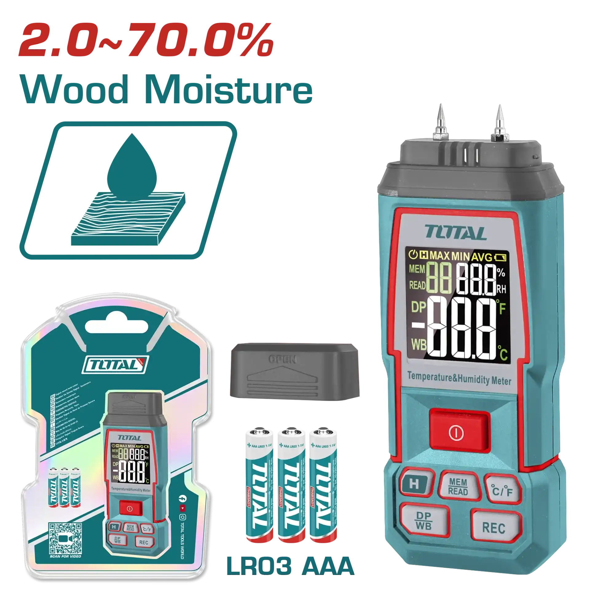 Total TETWM031 nem ölçer, ahşaptaki nem içeriğini kontrol etmek için güvenilir bir araçtır ve bir saniyeden kısa sürede hassasiyet ve hız sağlar. Kompakt ve kullanımı kolay olan bu cihaz, ortam sıcaklığını da ölçer ve bu sayede malzemelerin optimum durumda olduğundan emin olmak isteyen marangozlar, inşaatçılar ve kendin yap meraklıları için ideal bir yardımcıdır.