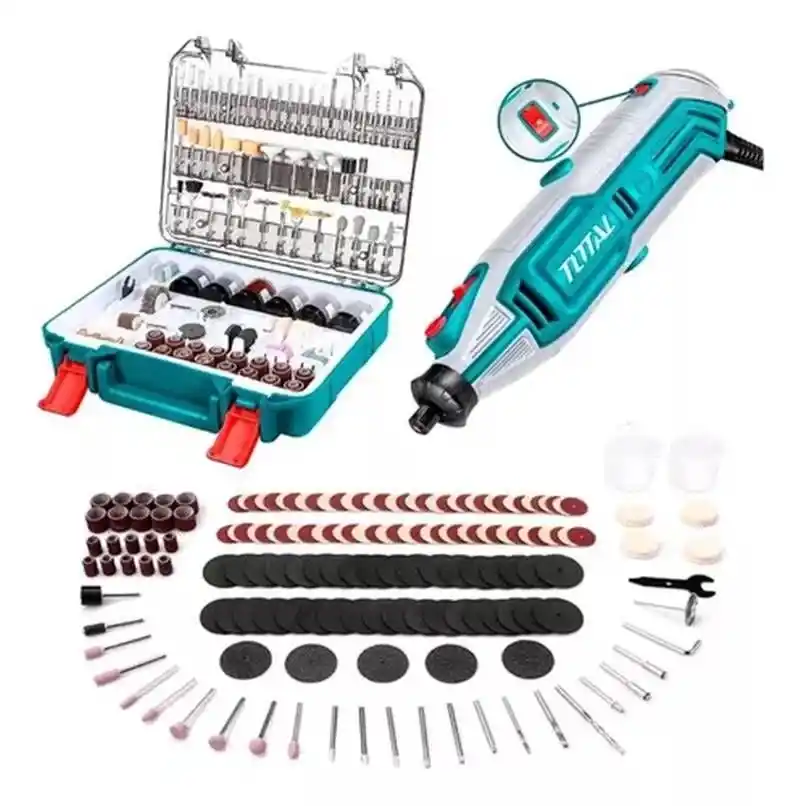 Total TG513326E 109 Parça Aksesuarlı Gravür Makinesi Seti, uzun ve üretken bir çalışma sağlayan kompakt ve pratik bir elektrikli alettir. Cihaz, 130 W gücüyle dakikada 10 ila 35 bin devir arasında değişen hızlara ulaşıyor ve bu da belirli görevi gerçekleştirmek için en uygun modu seçmenize olanak tanıyor. Hız bir anahtarla kontrol edilir.
