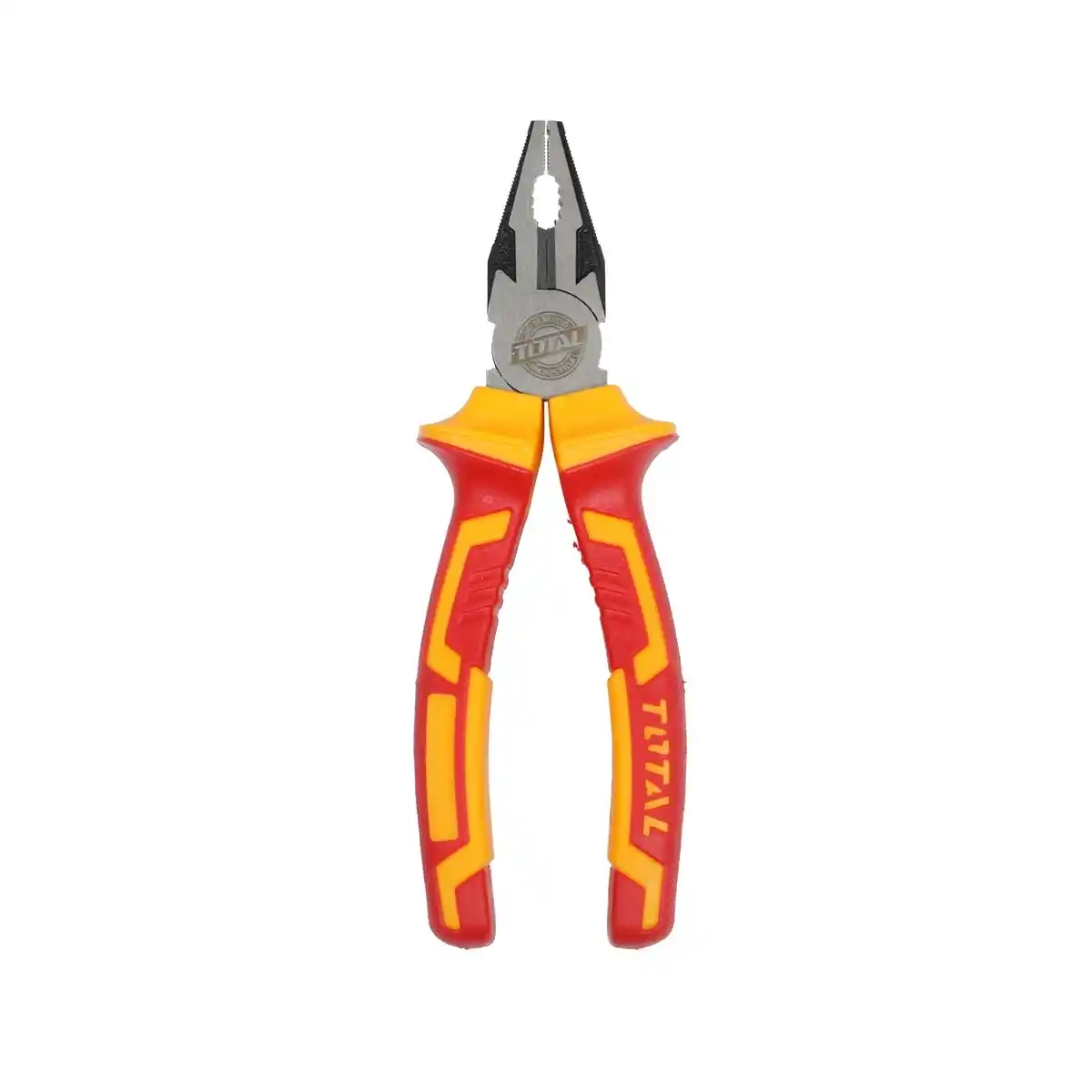Total THTIP2171, 1000V AC akıma kadar tam koruma sağlayan VDE ve GS sertifikalı izole sap yapısına sahip, yüksek torklu kesme ve tutma işlemleri için optimize edilmiş profesyonel bir kombine pensedir.