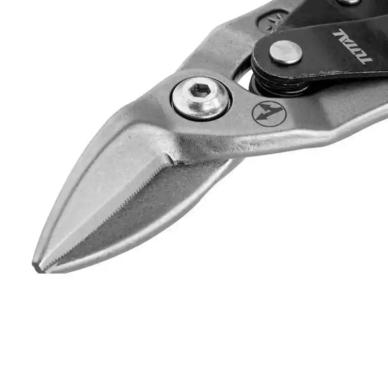 Total'in bu doğru kesim makasları, sacdan düz çizgiler ve dik açılı eğriler kesmek için mükemmeldir.